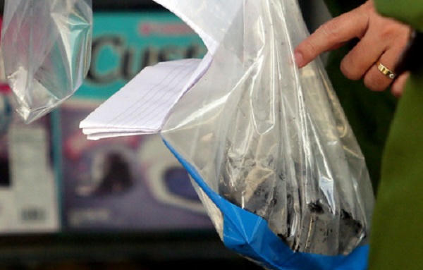 Bình ga mini và mẫu vật nghi của nghi can Quốc dùng để phóng hỏa được thu giữ tại hiện trường