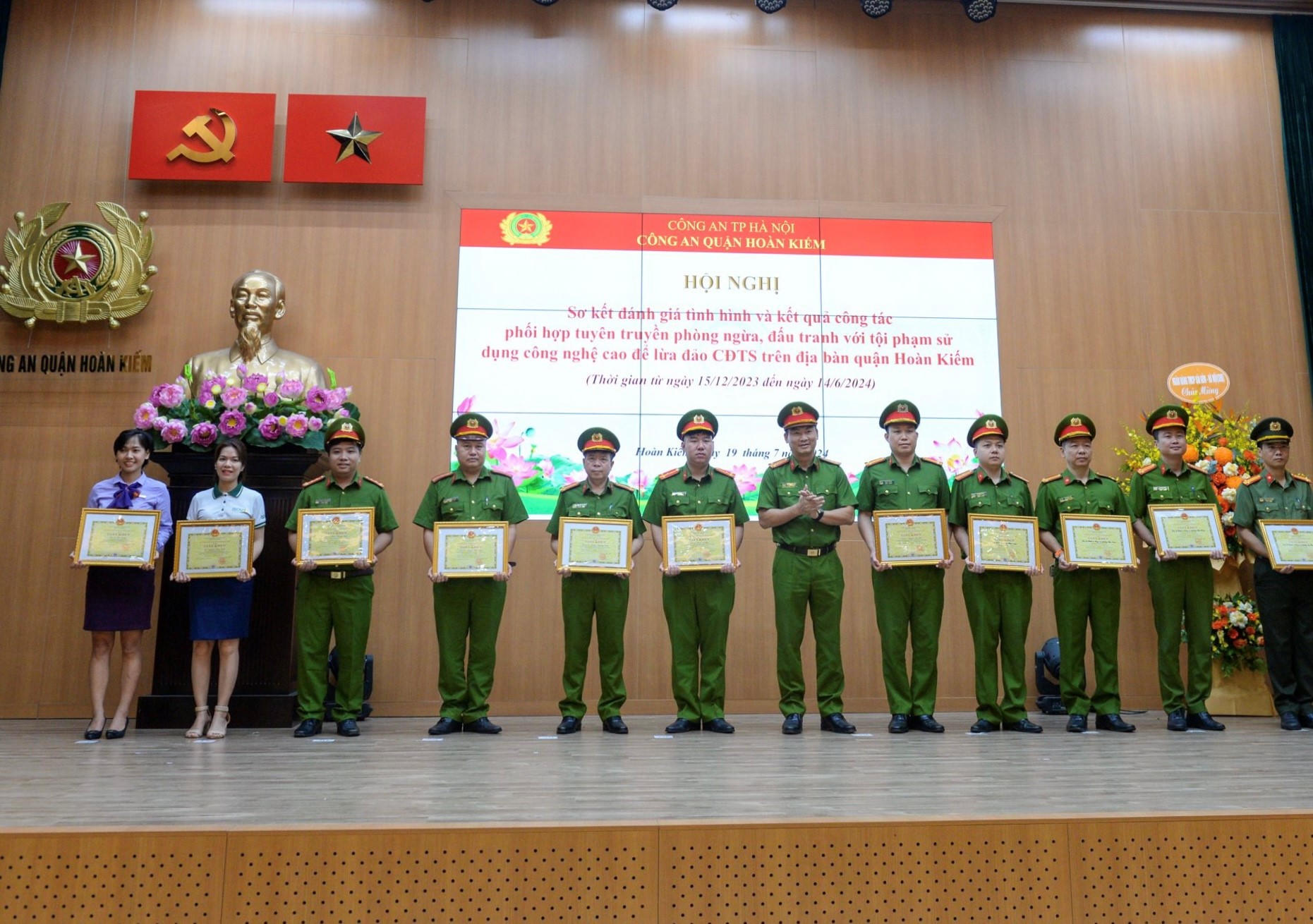 Chuyên viên Vũ Thị Lương – Ngân hàng Tiên Phong đã được Công an Quận Hoàn Kiếm trao bằng khen trong Hội nghị sơ kết đánh giá 6 tháng tình hình và kết quả công tác phối hợp tuyên truyền phòng ngừa, đấu tranh với tội phạm sử dụng công nghệ cao trên địa bàn Quận Hoàn Kiếm.