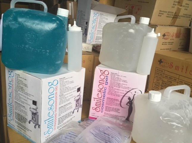 Cụ thể, Chiều 16/1, lực lượng chức năng kiểm tra kho hàng công ty Come co..Ltd. Tại thời điểm kiểm tra, nhân viên công ty đang tiến hành sản xuất Gel Siêu âm - Smilegel dùng trong y tế, loại gel siêu âm dùng trong khâu chuẩn đoán hình ảnh. Điều đáng nói là công ty này sản xuất gel chỉ bằng bột hòa với nước lã cho thêm ít phẩm mầu.