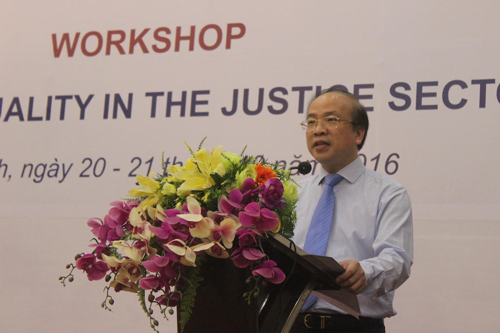 Thứ trưởng nhấn mạnh: “Tọa đàm diễn ra vào thời điểm hết sức có ý nghĩa, nhân dịp kỷ niệm 86 năm ngày thành lập Hội liên hiệp phụ nữ Việt Nam (20/10/1930-20/10/2016). Trong suốt chiều dài lịch sử của đất nước, phụ nữ Việt Nam luôn đóng vai trò tích cực trong sự nghiệp xây dựng và phát triển đất nước trong mọi thời kỳ và trên mọi lĩnh vực, trong đó có công tác Tư pháp và ngành Tư pháp nói riêng. Trải qua lịch sử hơn 70 năm xây dựng và phát triển của ngành Tư pháp cách mạng, các công chức, viên chức nữ đã luôn nỗ lực đưa các chủ trương, chính sách của Đảng và Nhà nước về công tác tư pháp vào thực tiễn đời sống xã hội, qua đó, khẳng định vị trí, vai trò của ngành Tư pháp trong sự nghiệp xây dựng và phát triển đất nước, cải cách tư pháp, cải cách pháp luật, xây dựng Nhà nước pháp quyền xã hội chủ nghĩa Việt Nam. Bằng sự lao động không mệt mỏi của mình, phụ nữ của ngành Tư pháp đã và đang đóng góp quan trọng, quyết định cho việc hoàn thành các nhiệm vụ chính trị, chuyên môn của Bộ, Ngành Tư pháp.”