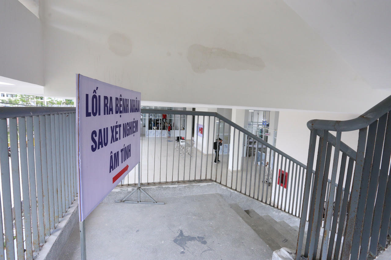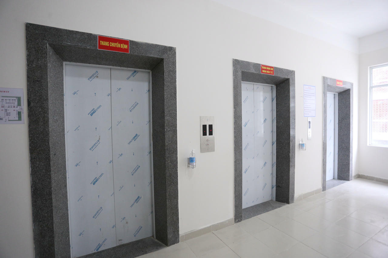 Bệnh viện dã chiến có cầu thang bộ và cầu thang máy. Thang máy dùng chuyển bệnh nhân với nhân viên y tế được tách biệt để hạn chế lây nhiễm chéo trong không gian kín.