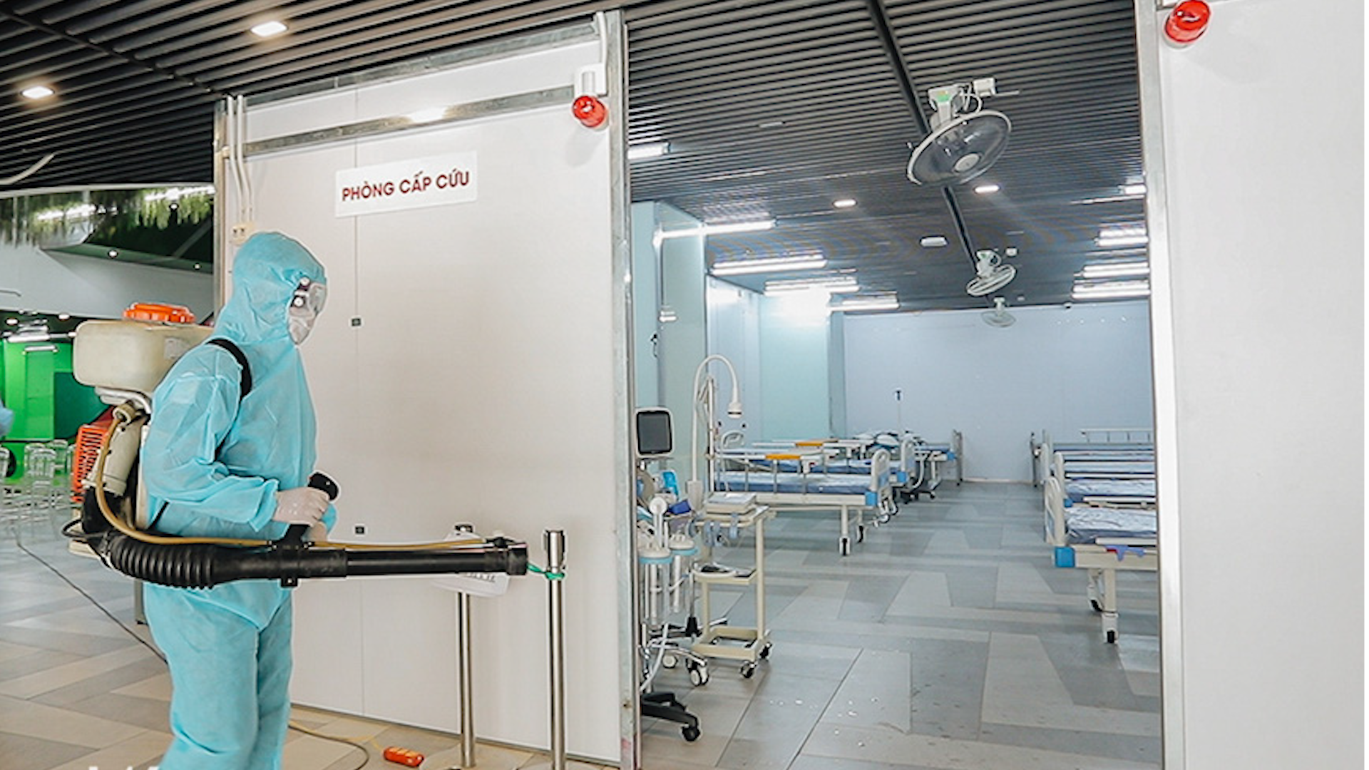 (PLM) - Bệnh viện gồm 3 tầng với diện tích hơn 30.000 m2, quy mô gần 1.000 giường bệnh, chuyên tiếp nhận điều trị các bệnh nhân Covid-19 (F0) nhẹ hoặc không có triệu chứng.