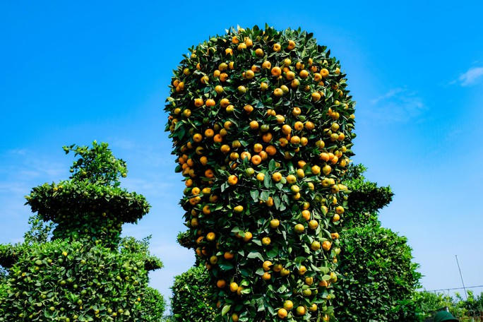 Độc đáo nhất trong khu vườn là cây quýt khổng lồ hình chiếc cúp World Cup có chiều cao 3 m, rộng 2m theo “trend” World Cup 2022.
