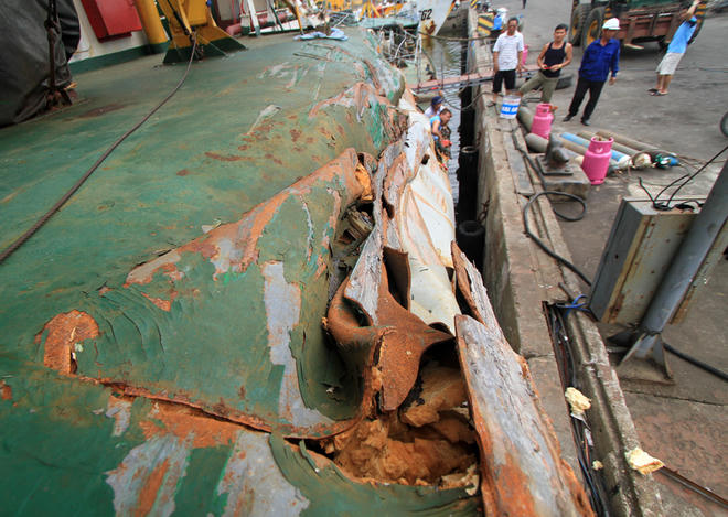 Cận cảnh con tàu kiểm ngư bị 5 tàu Trung Quốc đâm nát