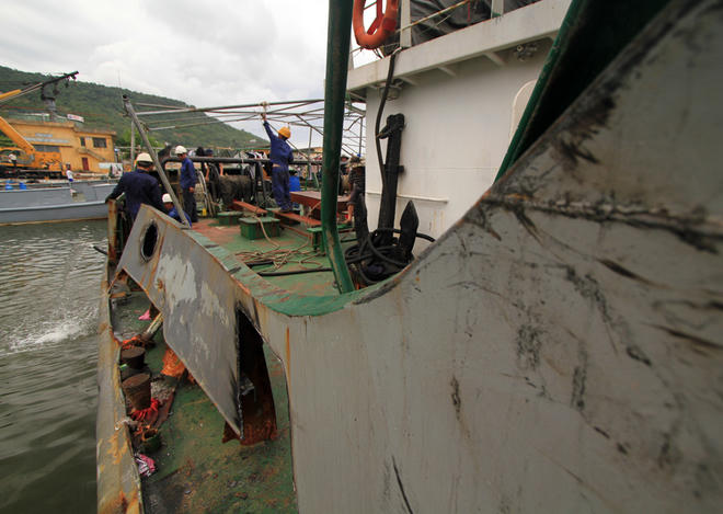 Thời gian qua, nhiều tàu kiểm ngư, cảnh sát biển của Việt Nam bị tàu Trung Quốc đâm khi làm nhiệm vụ tuyên truyền pháp luật, yêu cầu Trung Quốc rút ngay giàn khoan Hải Dương 981 hạ đặt trái phép trong vùng biển và vùng đặc quyền kinh tế của Việt Nam. Các tàu này được cấp tập sửa chữa ngay khi về bờ để trở lại Hoàng Sa.