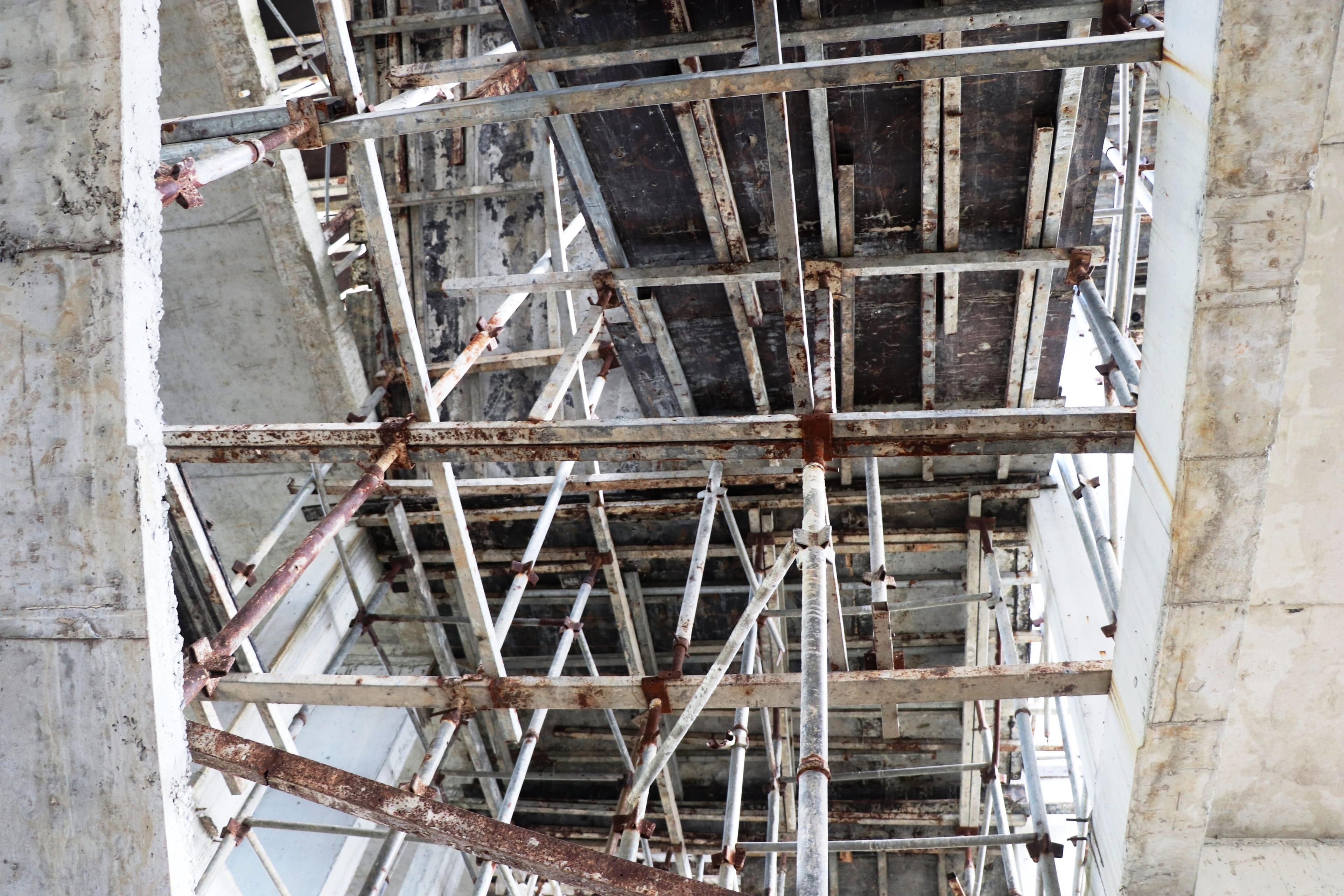 Giàn giáo chằng chéo tại một khu vực đang thi công dang dở.