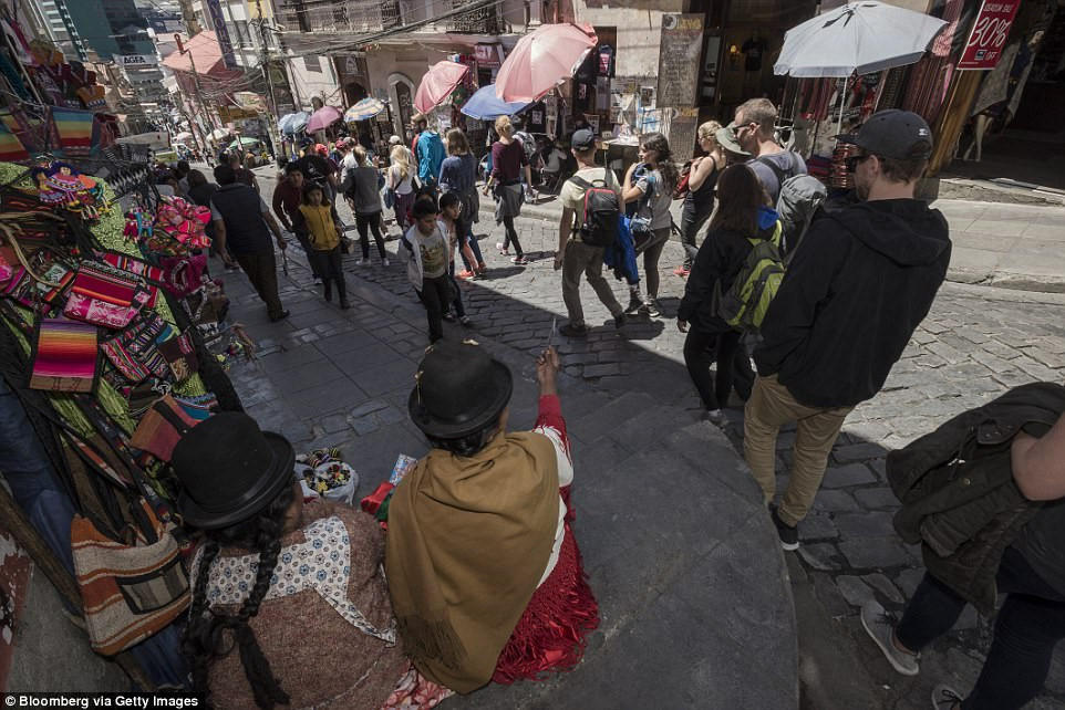 Những người bán hàng mặc trang phục truyền thống, đội mũ nồi ngồi bán hàng, trong lúc nam giới trải tấm vải trên đất và bói cho du khách bằng lá coca. Theo họ, gần đây nhiều người quay lại quan tâm đến các tín ngưỡng địa phương.