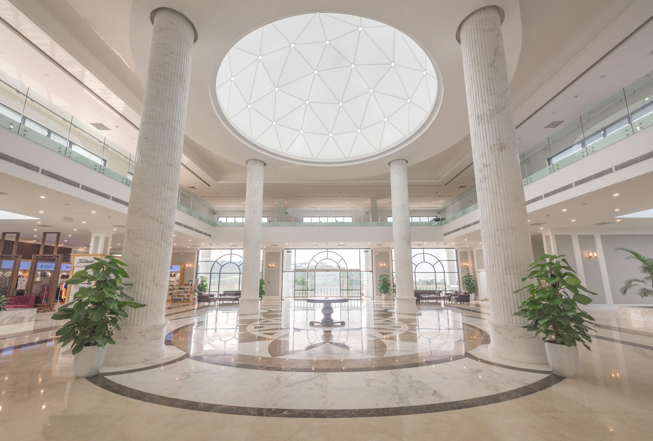Cạnh cổng chính vào sân golf, công trình Clubhouse với phong cách kiến trúc sang trọng, không gian nội thất hiện đại, trang bị đầy đủ các chức năng của một tòa nhà điều hành hệ thống nhằm phục vụ mọi nhu cầu nghỉ dưỡng kết hợp thể thao cho các golfer và du khách