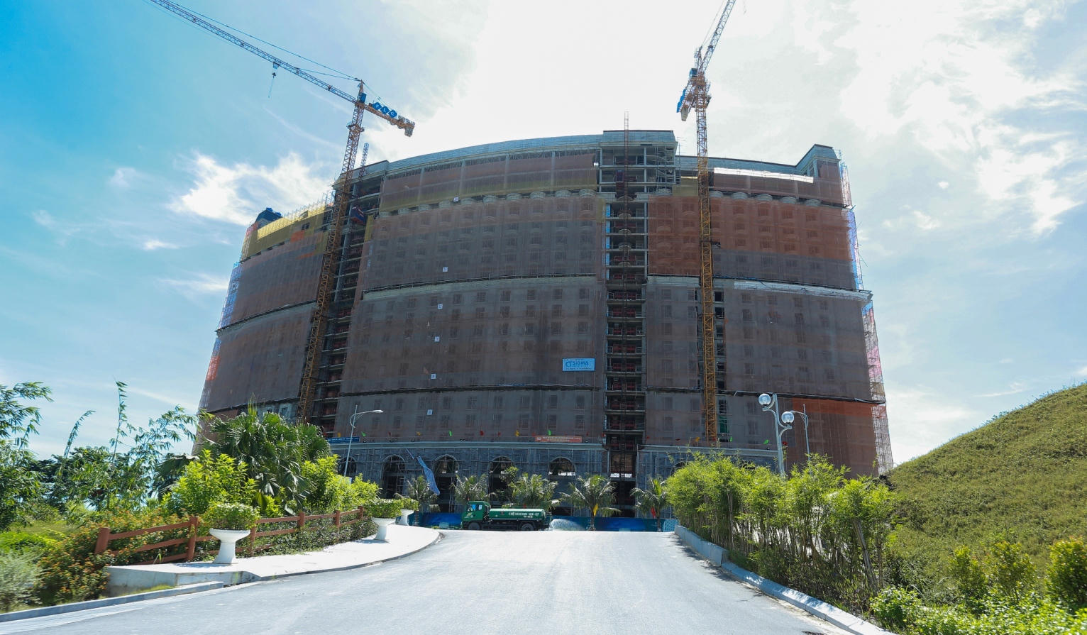 FLC Hạ Long đang bước vào giai đoạn hoàn thiện những hạng mục cuối cùng. Trong đó, khách sạn FLC Grand Hotel Halong đã cất nóc, hiện đang thi công xây trát mặt trong, mặt ngoài và chuẩn bị hoàn thiện căn hộ mẫu. Dự kiến khi hoàn thành, FLC Grand Hotel Halong có khả năng đáp ứng nơi lưu trú cho 1.500 golfer và khách du lịch