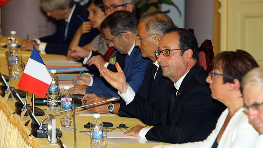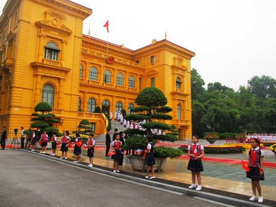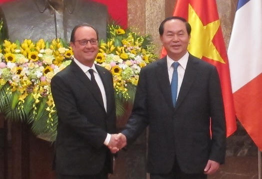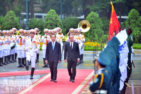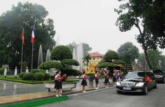 Lễ đón chính thức Tổng thống Pháp Francois Hollande diễn ra long trọng tại Phủ Chủ tịch, sáng nay, 9/6, mở đầu các hoạt động trong chuyến thăm cấp Nhà nước của Tổng thống Pháp tới Việt Nam. Chuyến thăm được kỳ vọng tạo luồng gió mới cho quan hệ hai nước.