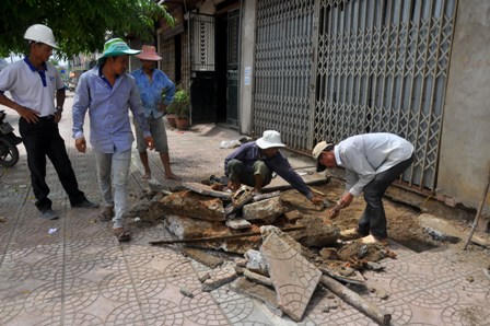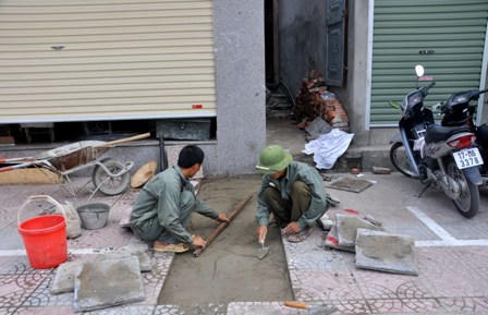Tuy nhiên, cần phải nói tới trách nhiệm của các công trình nhà dân đang thi công cũng gây ra những ảnh hưởng nhất định tới chất lượng công trình vỉa hè ở đây.