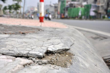 (PLO) - Vỉa hè đường Ô Chợ Dừa – Hoàng Cầu có vốn đầu tư 2 tỷ đồng, tuy nhiên khi mới đưa vào sử dụng đã xuất hiện tình trạng nhiều điểm gạch lát bị lún nứt, gãy vỡ, bó vỉa bị bong bật…