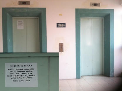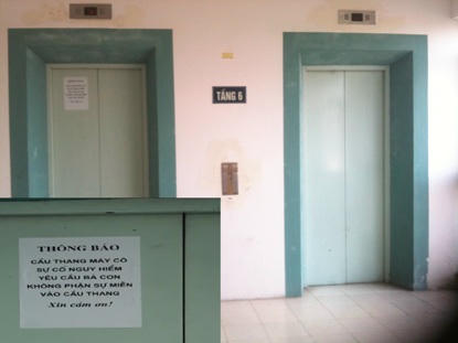 Tệ hại hơn nữa, bên cạnh chiếc thang máy "già cỗi" trước thời hạn, chiếc còn lại đã bị niêm phong bằng biển báo “ thang máy gặp sự cố nguy hiểm, người dân không phận sự miễn vào”. "Sự cố " như vậy tồn tại suốt mấy năm qua, nhưng không hề được khắc phục, xử lý. Để an toàn, đa phần người dân đều chọn phương án chậm mà chắc đó là đi thang bộ.