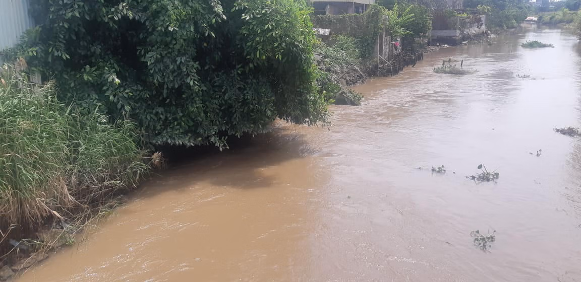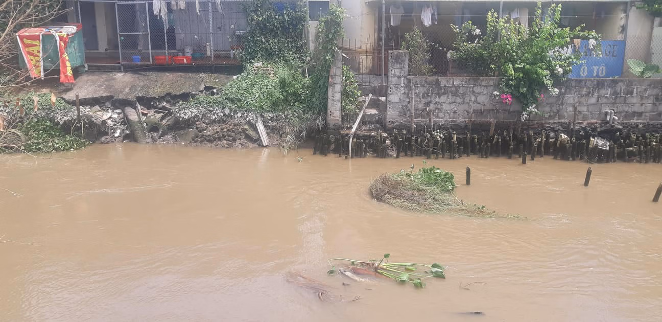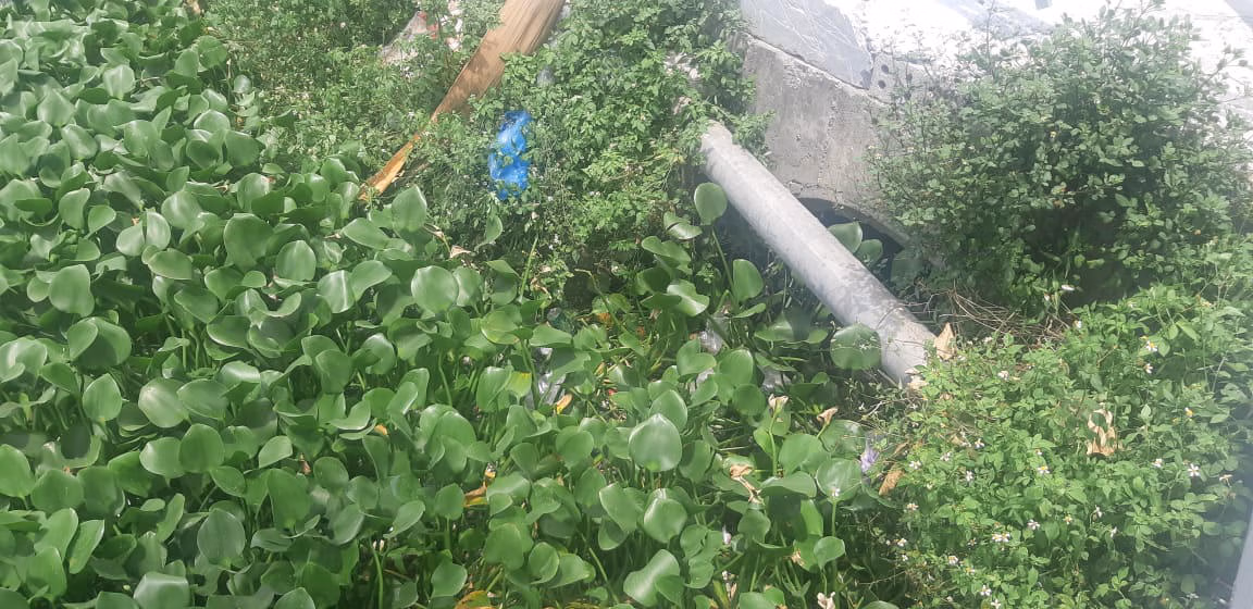 Nước của con mương này đục phù sa, nhiều tạp chất, nhiều bèo và có mùi hôi của nước thải.