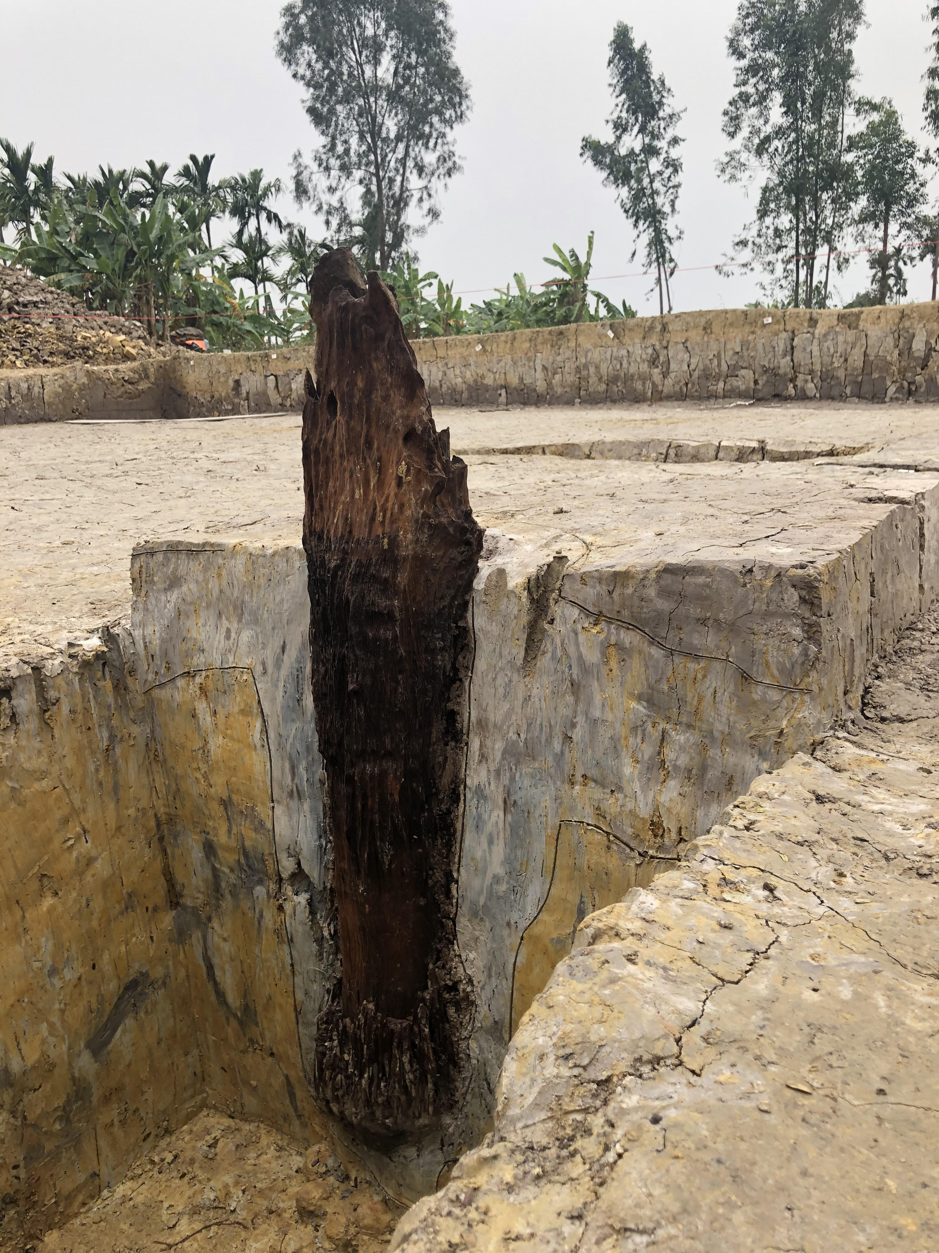 Tại buổi khảo sát, Tiến sỹ Bùi Văn Hiếu, Viện khảo cổ - Viện Hàn lâm Khoa học xã hội Việt Nam cho biết, từ các lát cắt kiểm tra địa tầng, đối chiếu với các cọc gỗ đã phát hiện được có thể thấy thế đất tại khu vực này.
