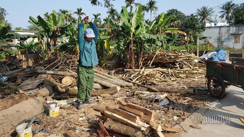 Tất cả các công việc như chặt nhỏ tre, chặt nhỏ củi, đem rửa nguyên liệu, phơi phóng đều được diễn ra trên mặt đường bê tông chứa đầy bụi bẩn.