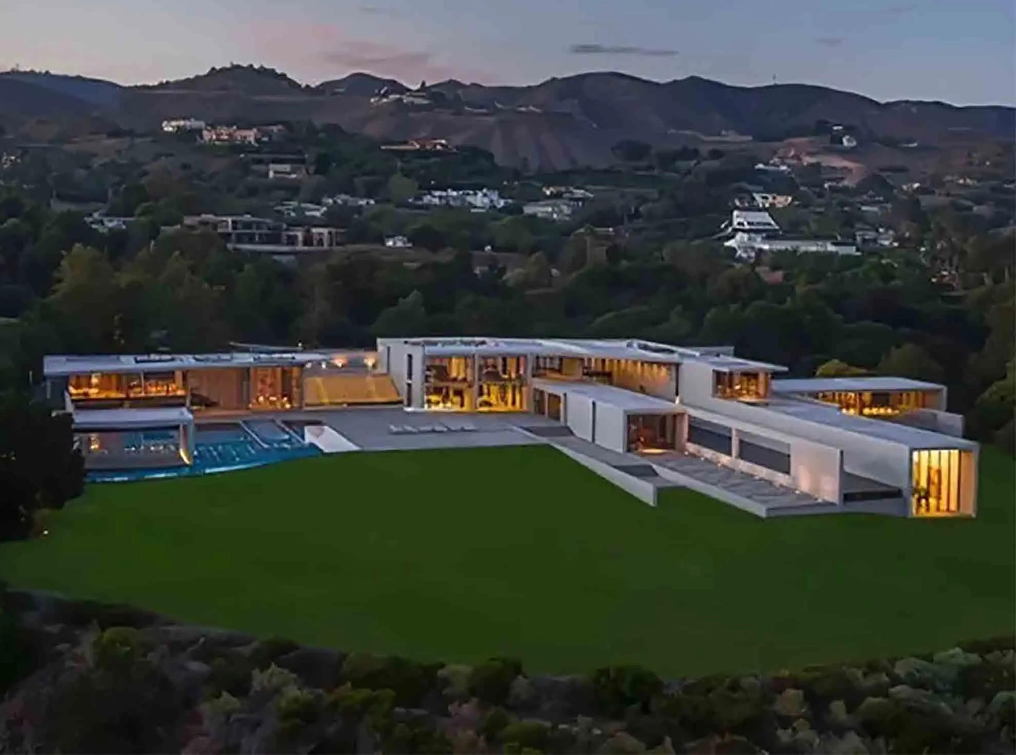 Căn biệt thự có 4 hồ bơi ngoài trời, spa, trung tâm chăm sóc sức khỏe, phòng truyền thông, nhiều khu vực giải trí ngoài trời, nhà để xe ô tô 15 chỗ, sân bóng rổ cỡ lớn và khu dành cho nhân viên.