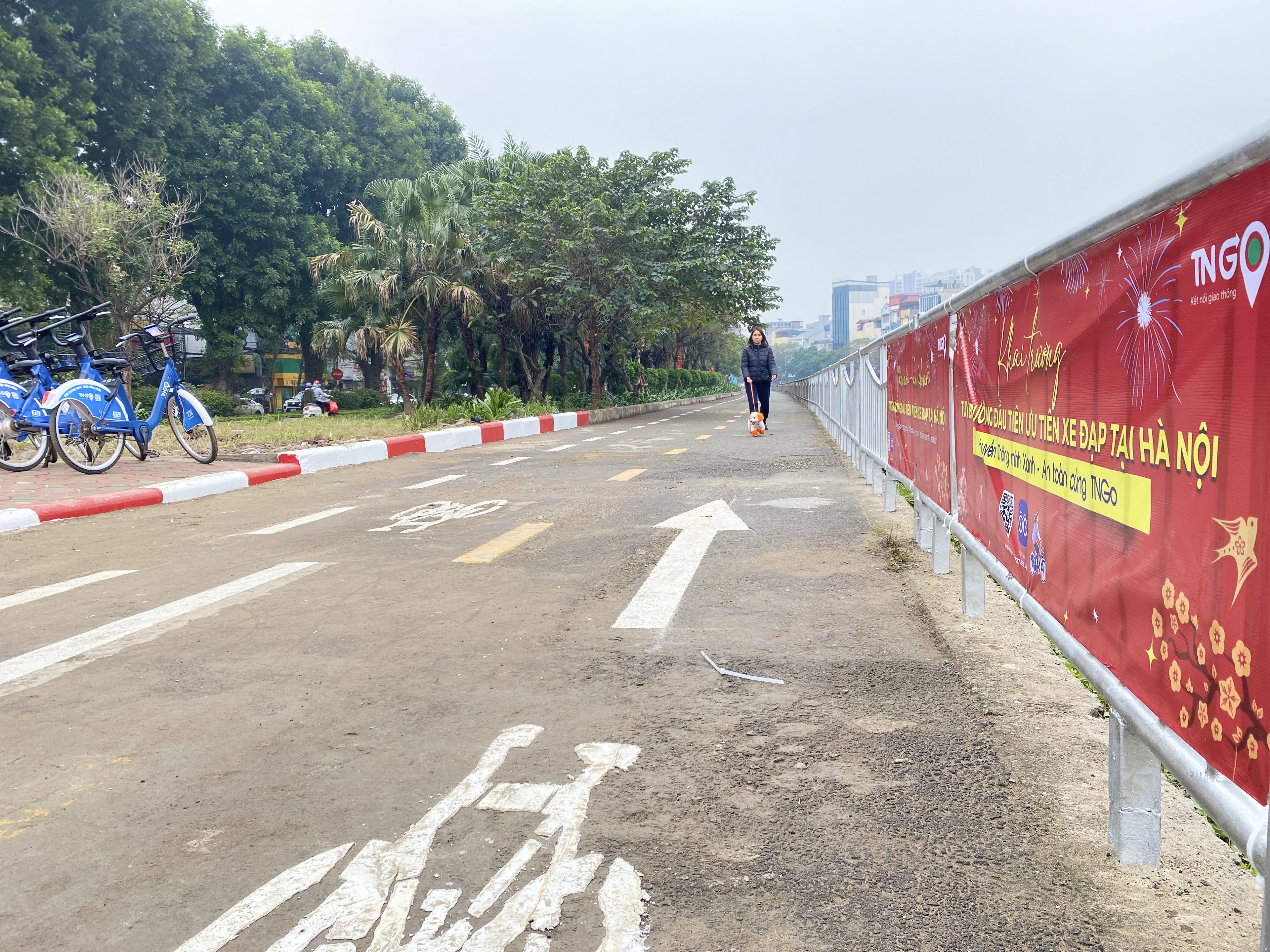 Cận cảnh tuyến đường dành riêng cho xe đạp ở Hà Nội