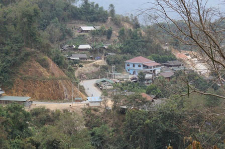 Bản Pa Hốc nằm ngay sát biên giới 2 nước Việt Nam – Lào, qua cửa khẩu Tây Trang chừng 5km thì đã thấy một bản đa phần là nhà xây quây kín mít, có nhà còn lắp camera giám sát, nằm rải dọc 2 bên đường, kéo dài chừng 1km.