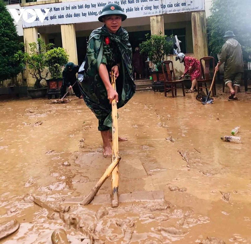Lũ lụt dâng cao kéo theo một lượng lớn tàn dư như bùn non, rác ngập ngụa trong khuôn viên trường học. Bởi vậy, ngay khi lũ rút, để đảm bảo được việc học của học sinh, việc dọn dẹp trong khuôn viên trường, các lớp học cần nhanh chóng thực hiện.