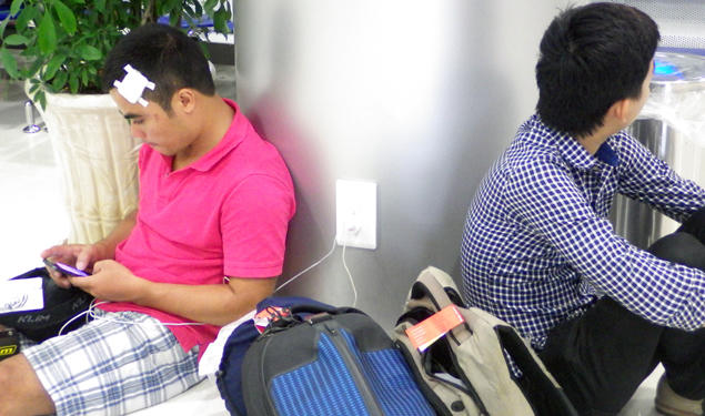 - Trong thời buổi quá phụ thuộc vào các thiết bị điện tử như hiện nay, bạn sẽ phát điên nếu không sạc được điện thoại, iPad, máy tính. Tại sân bay, các ổ cắm liên tục quá tải bởi lượng khách chờ bay rất đông. Để giải quyết vấn đề này, hãy đút túi 1 ổ cắm 2-3 ổ để sử dụng. Ngay cả sạc dự phòng đôi lúc cũng không thể cứu bạn được khi mà các chuyến bay giá rẻ có thể huỷ chuyến lên đến cả nửa ngày. Nếu mua sạc dự phòng, hãy chọn loại có dung lượng lớn và nhớ sạc đầy trước khi ra sân bay.