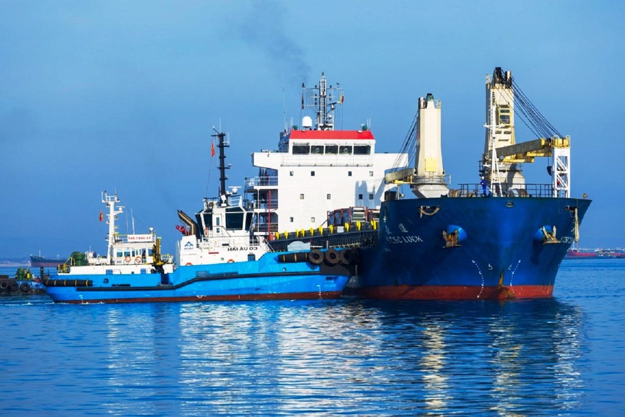 Lai dắt tàu vào cảng Hòa Phát- Dung Quất. |