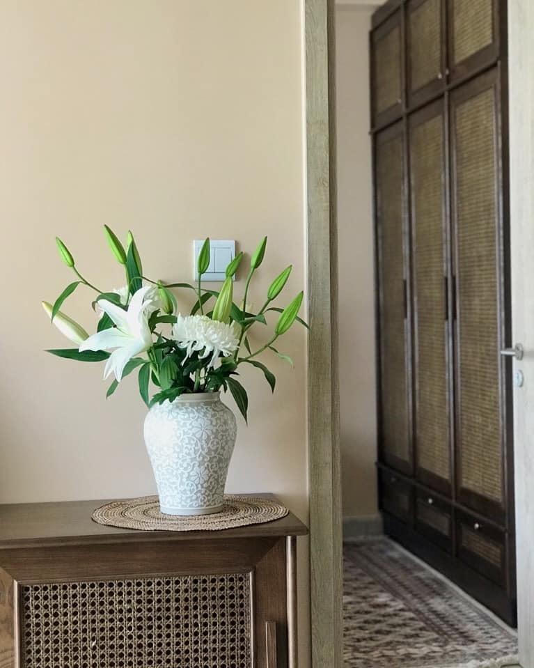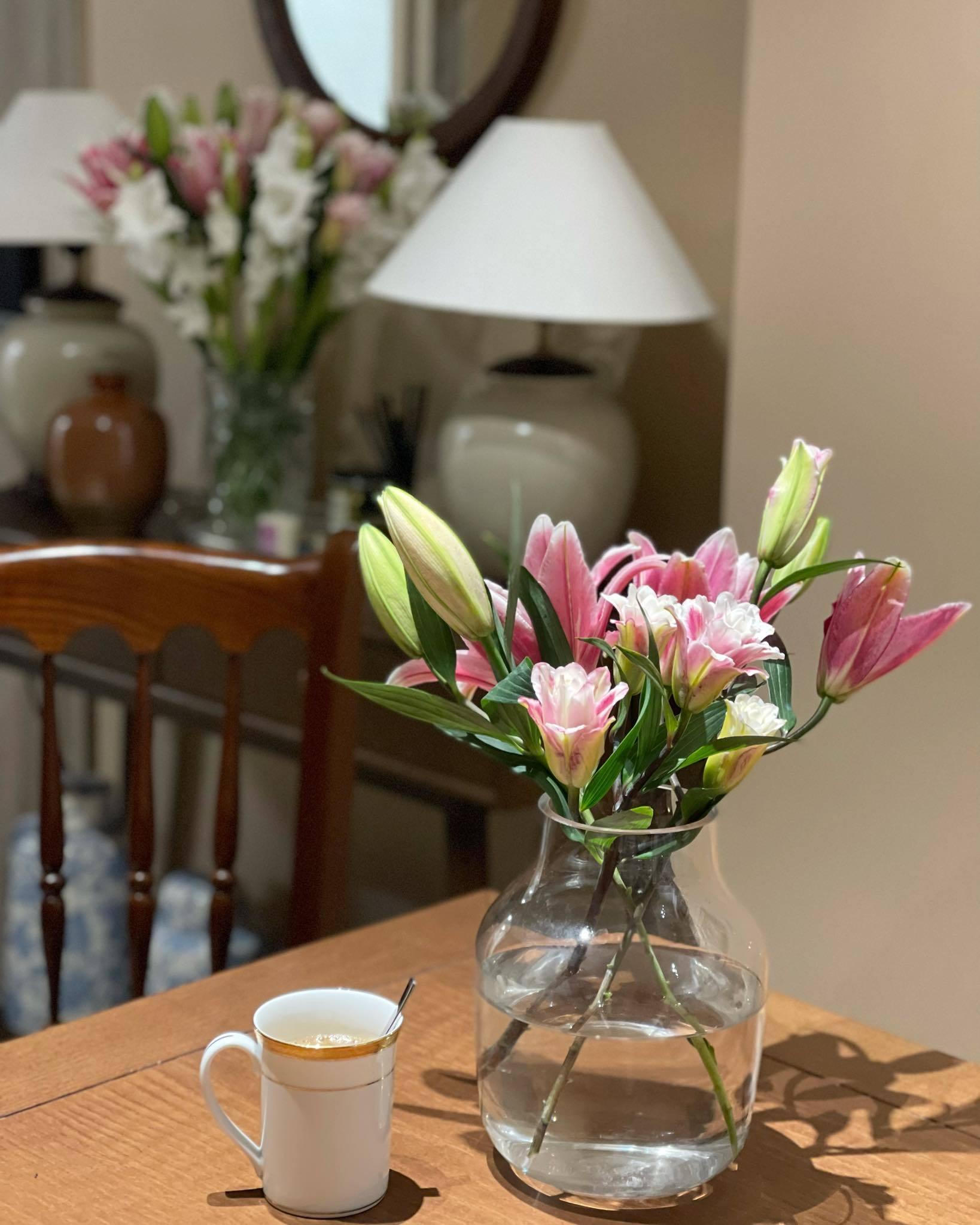 Những bình hoa tươi làm cho cuộc sống thi vị, sinh động hơn. Chị Thủy là người lãng mạn, chị quan điểm hoa tươi không chỉ làm đẹp cho nhà, còn giúp tâm hồn giải tỏa căng thẳng rất tốt.