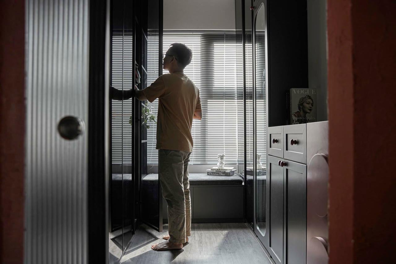 Kiến trúc sư đã chọn lọc ra một bảng màu tối để thể hiện được cá tính, lối sống cũng như sở thích của gia chủ - muốn sống giữa không gian nghệ sĩ, đương đại và đầy tính ngẫu hứng.