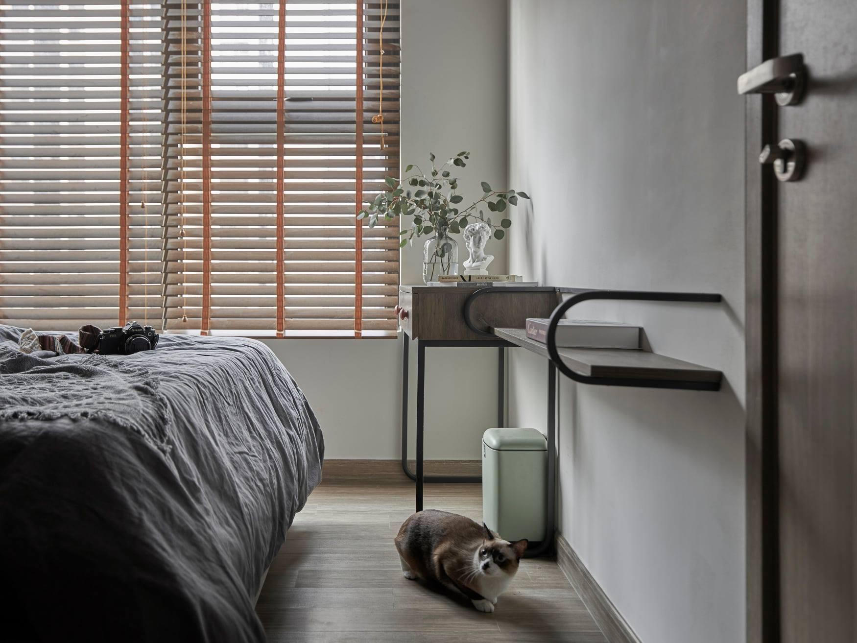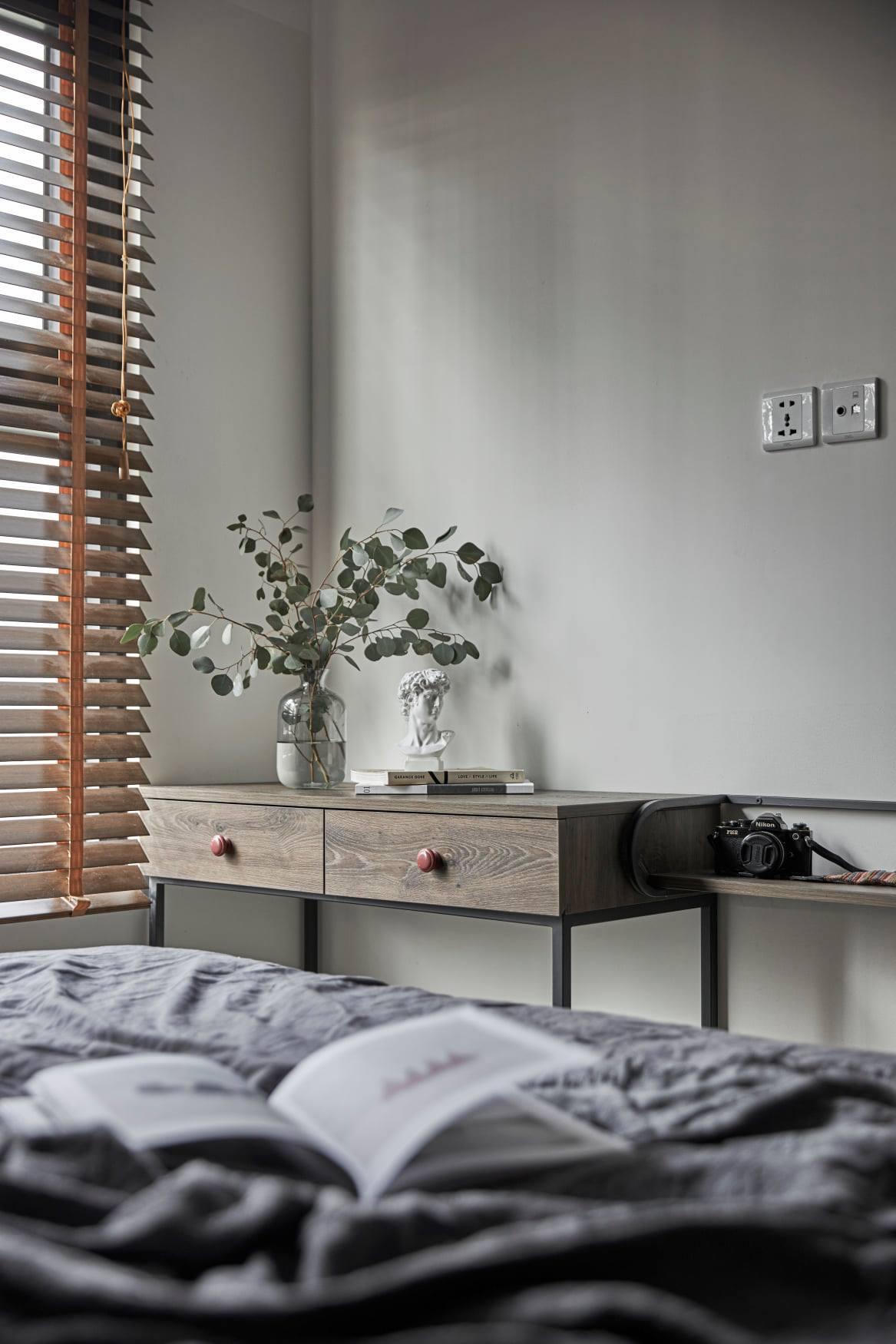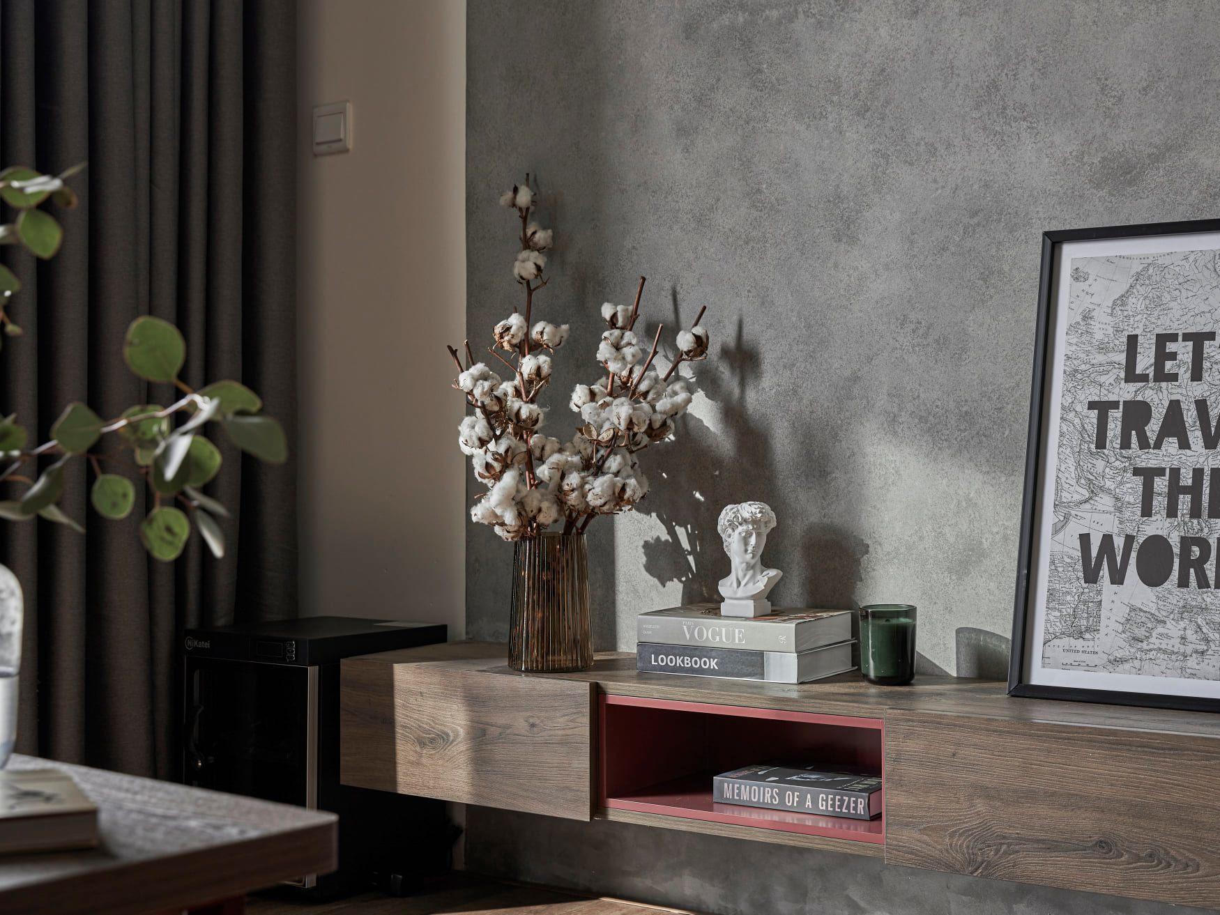 Bề mặt sơn trắng trên tường như hiện trạng của chủ đầu tư được giữ lại khá ít, bù lại các khoảng màu xám xuất hiện trên vách tường - trần của không gian, tạo nên chiều sâu, nới rộng diện tích căn hộ về mặt cảm giác.