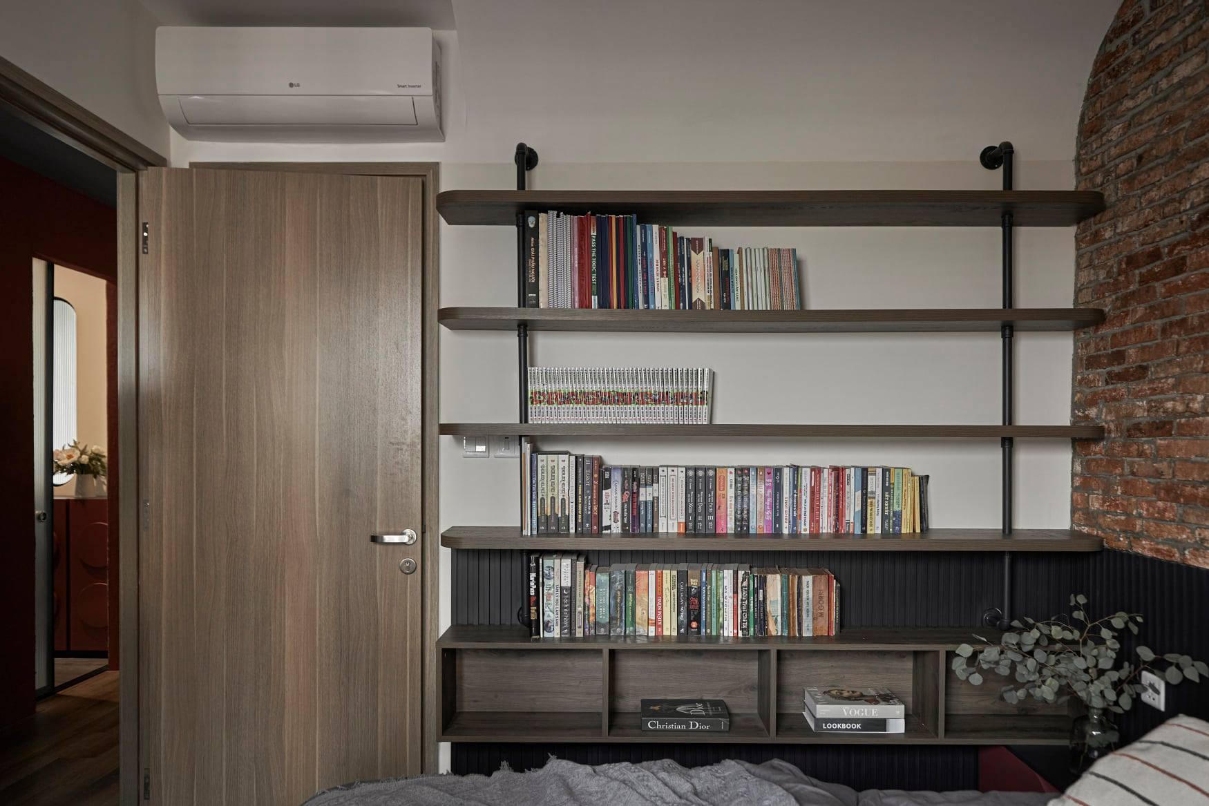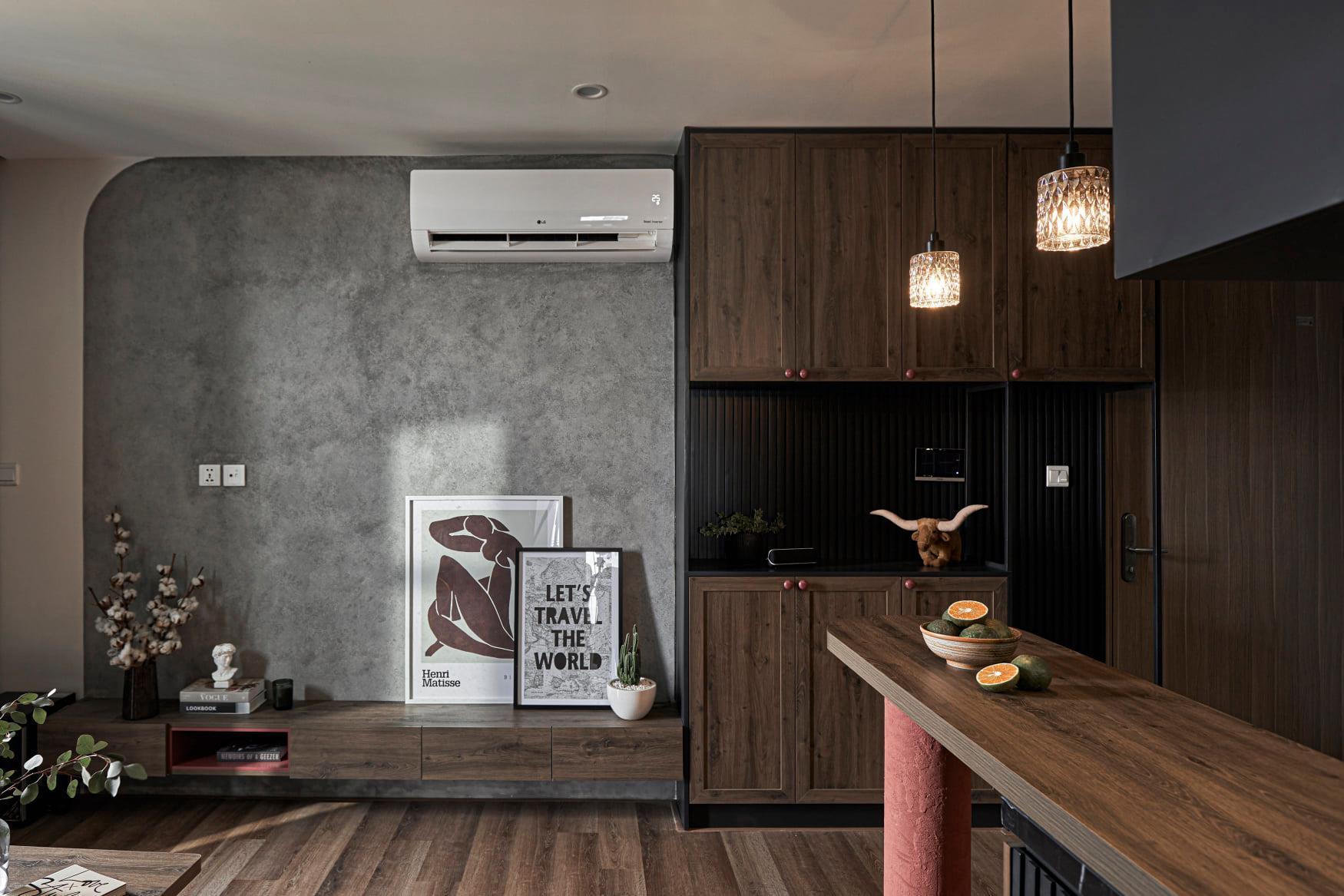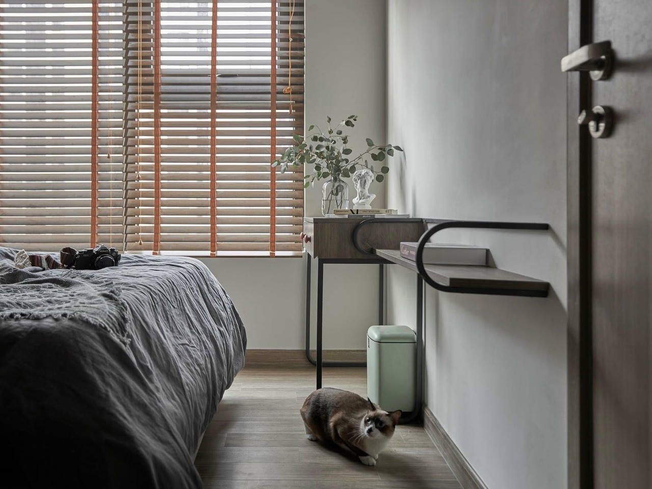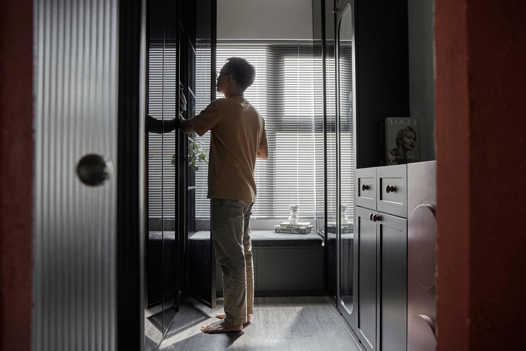 Bề mặt sơn trắng trên tường như hiện trạng của chủ đầu tư được giữ lại khá ít, bù lại các khoảng màu xám xuất hiện trên vách tường - trần của không gian, tạo nên chiều sâu, nới rộng diện tích căn hộ về mặt cảm giác.