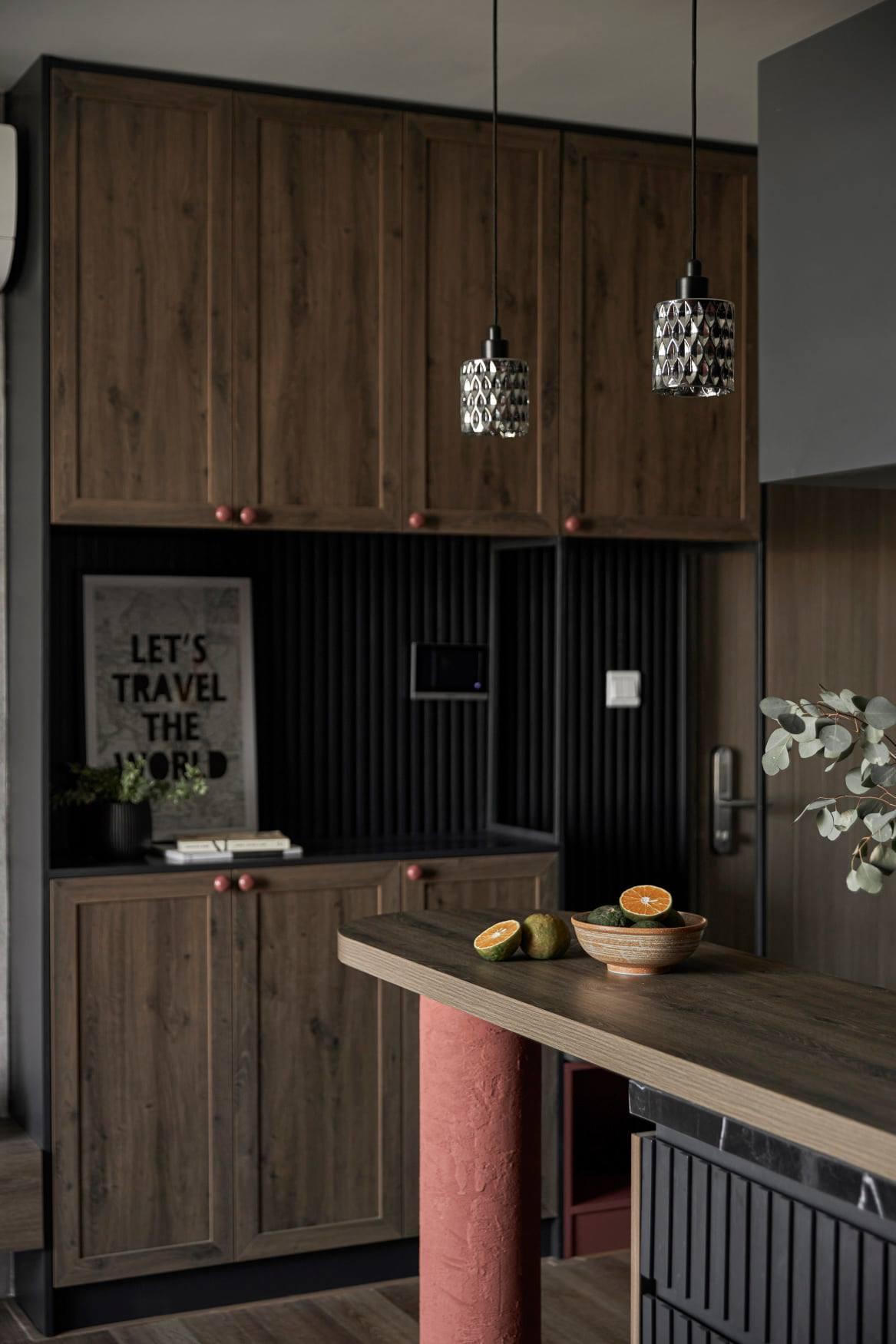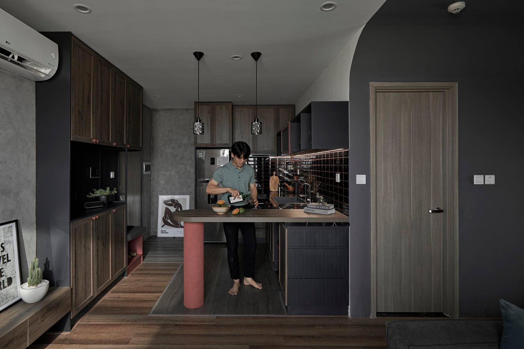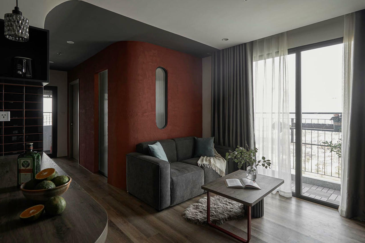 Trước những yêu cầu này, kiến trúc sư Tống Ly đã kết hợp hài hòa các yếu tố, đưa tông màu tối vào căn hộ 2 ngủ có diện tích 64m2.