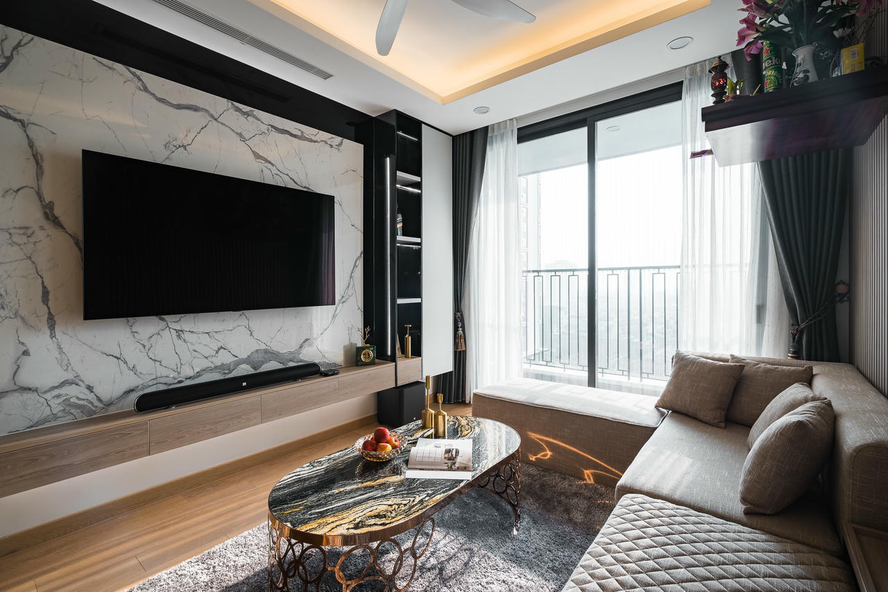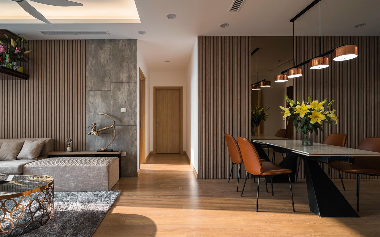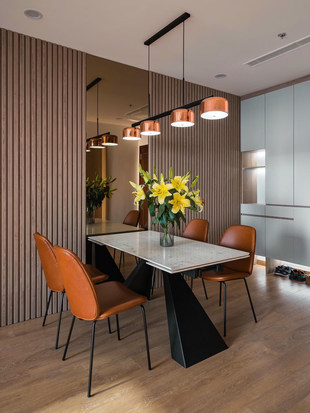 Căn hộ mang phong cách Modernism được decor với gam màu trầm, sang trọng
