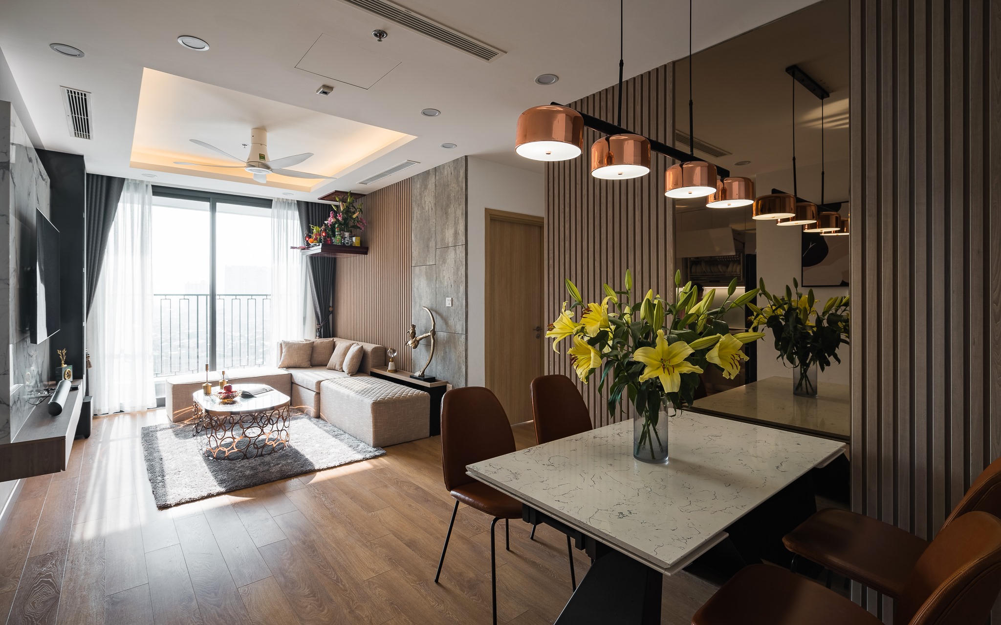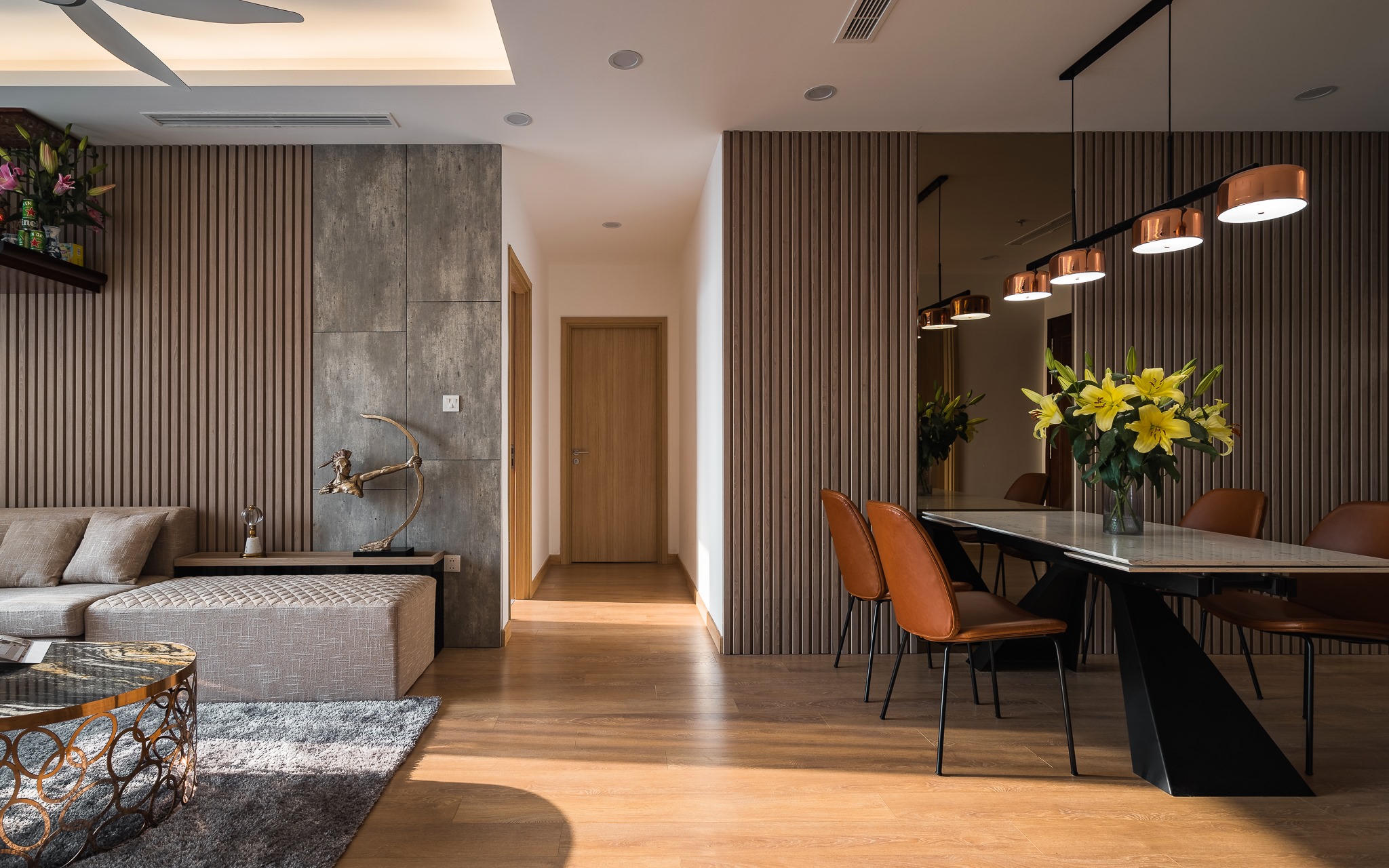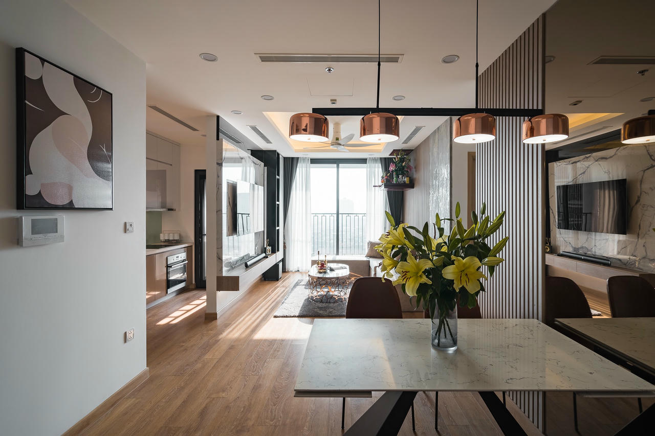 Căn hộ mang phong cách Modernism được decor với gam màu trầm, sang trọng
