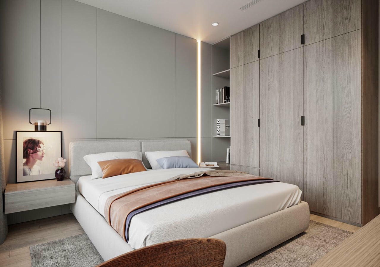 Một phòng ngủ khác, nữ tính mềm mại với màu sắc trung tính, thiên về cảm ấm áp và ánh sáng dịu dàng nhẹ nhàng. |