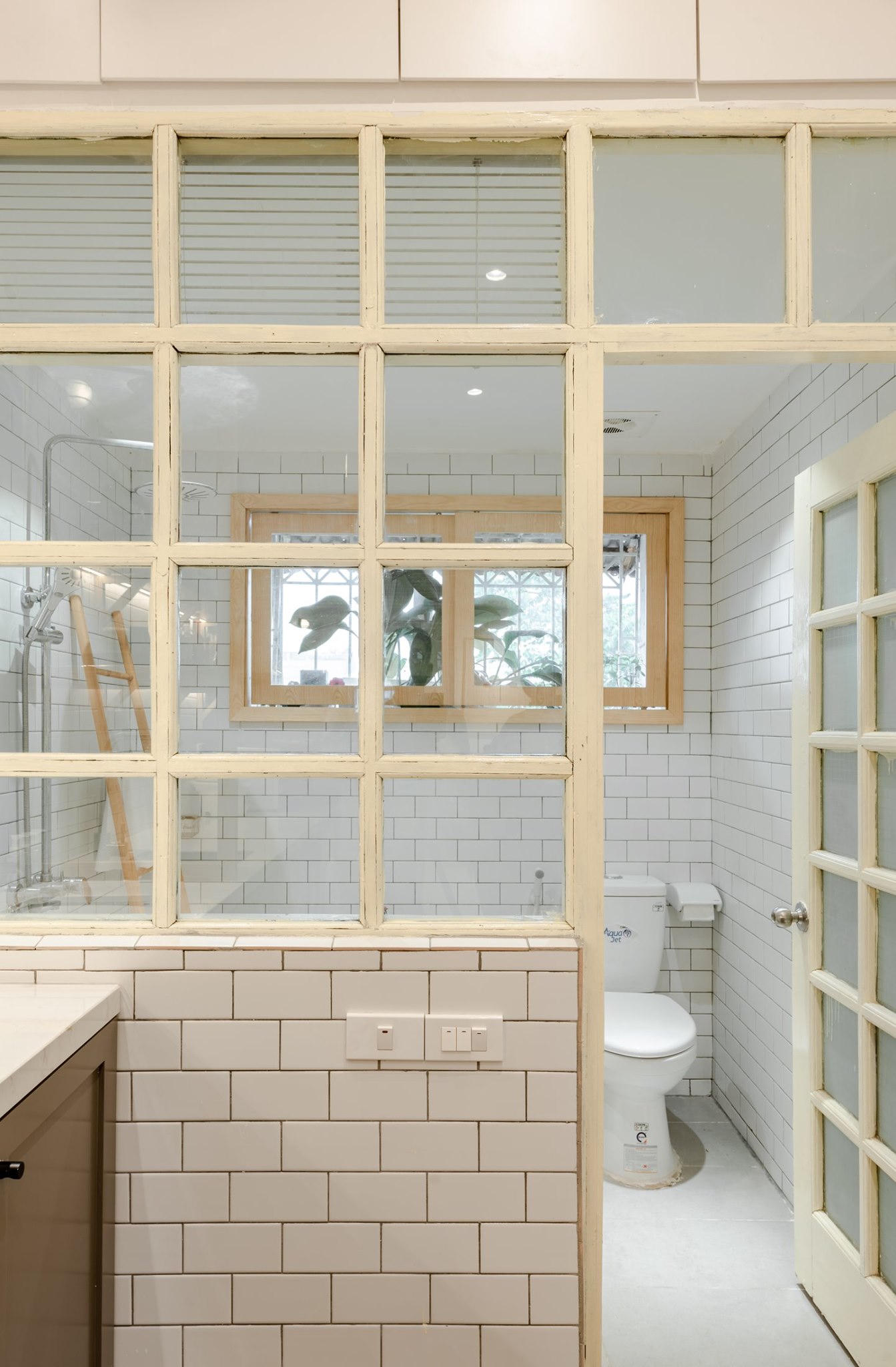 Để giữ được nguyên vẹn cảm giác khi lần đầu tiên bước vào ngôi nhà này, anh Nam đã tận dụng và giữ nguyên toàn bộ cửa sổ, cửa đi, vách gỗ theo đúng nguyên bản của căn hộ cũ. Anh Nam tận dụng nguyên bộ vách gỗ ngăn phòng và chỉnh sửa lại một chút để làm vách ngăn vệ sinh. Tạo cho ngôi nhà thông thoáng, rộng rãi hơn và thú vị hơn.