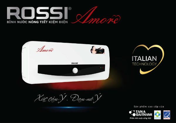 Bình nước nóng Rossi Amore là một trong những dòng sản phẩm được đặc biệt ưa chuộng bởi đông đảo người tiêu dùng. Amore là từ đẹp nhất của tiếng Ý, có nghĩa là Tình yêu. Bình nước nóng Rossi Amore mang thông điệp “Xúc cảm Ý. Đam mê Ý”, ngay từ khi ra mắt vào tháng 10/2016 đã lập tức tạo nên cơn sốt trên thị trường và vẫn luôn giữ được độ “hot” duy trì vị thế sản lượng dẫn đầu.