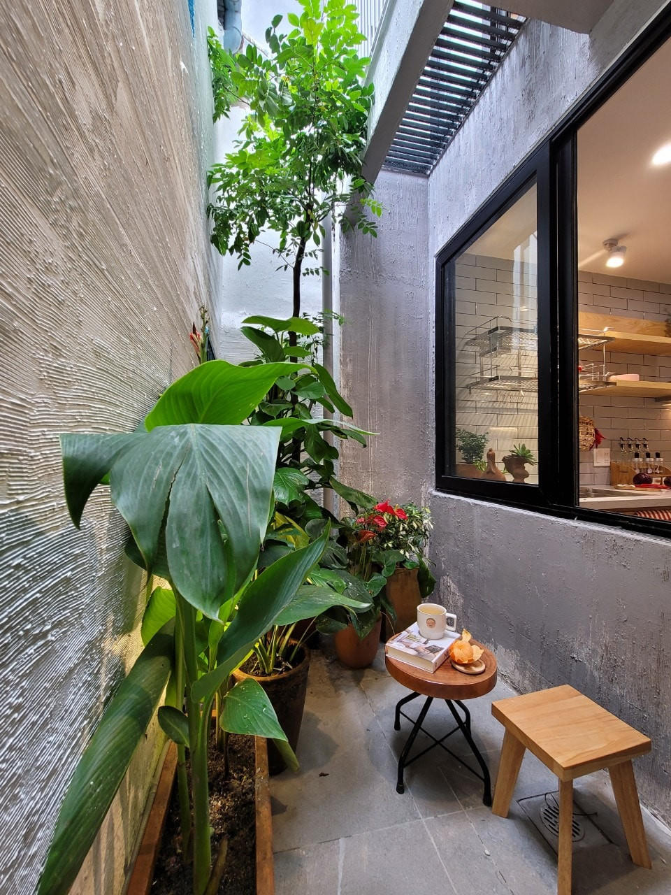 Sân vườn chill nhỏ xinh và rợp cây xanh. |