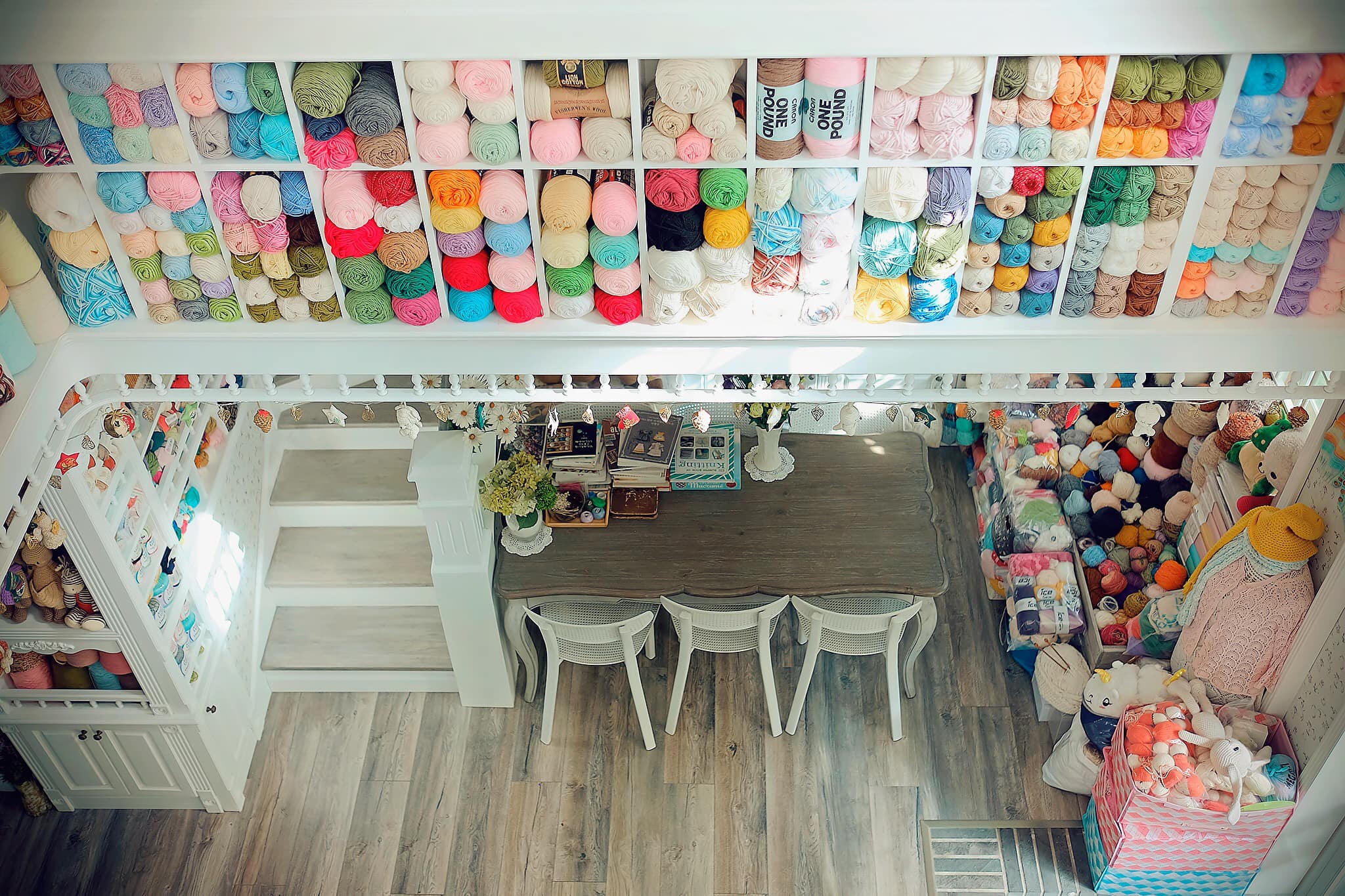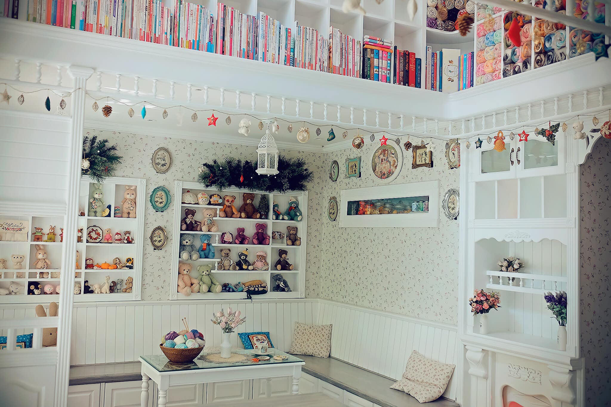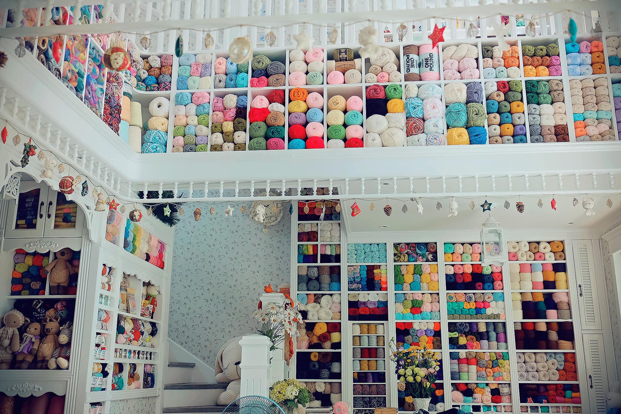 Căn phòng tràn ngập len sợi và gấu bông tạo cảm giác như đang ở trong thế giới chuyện tranh. |