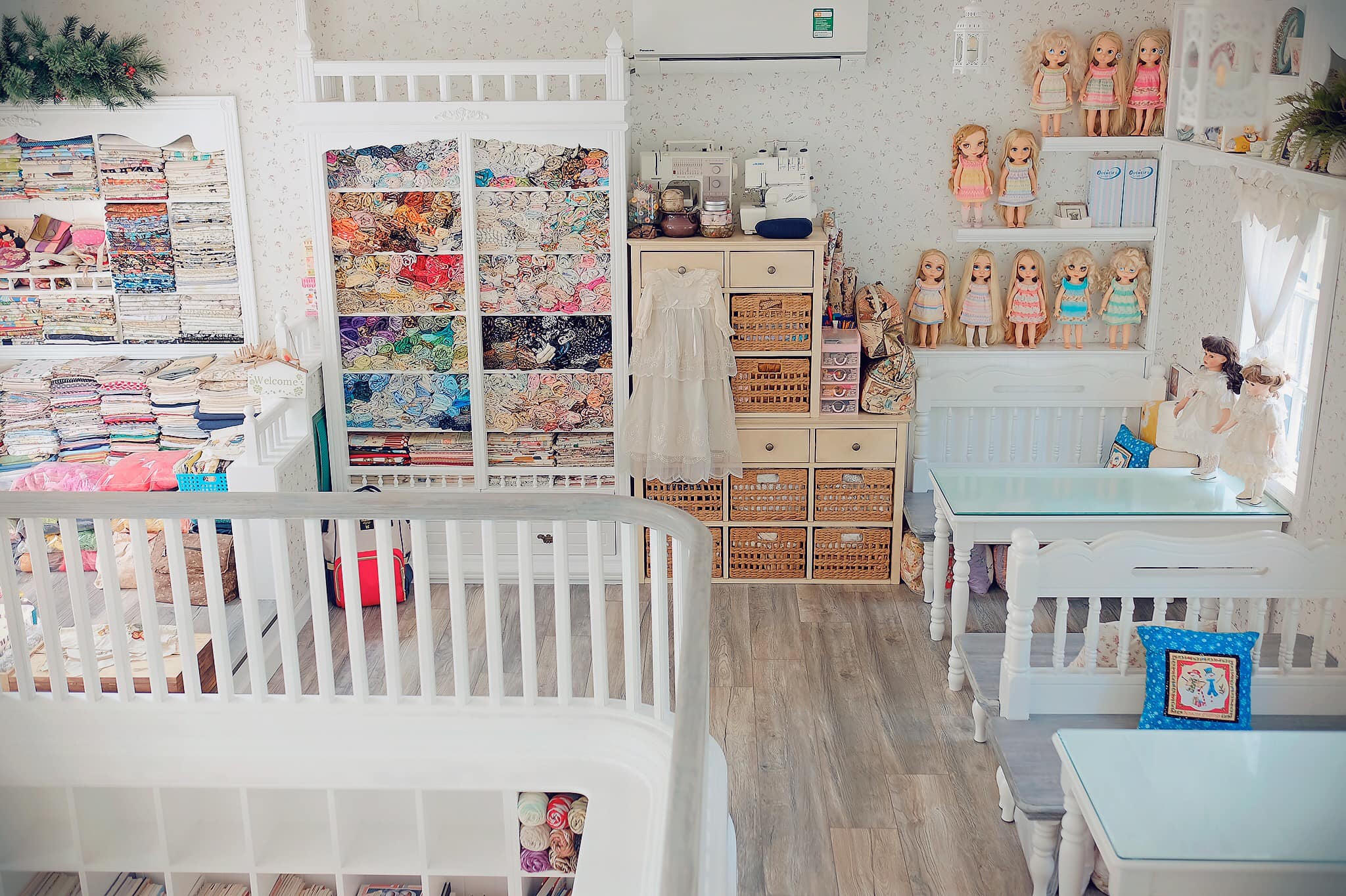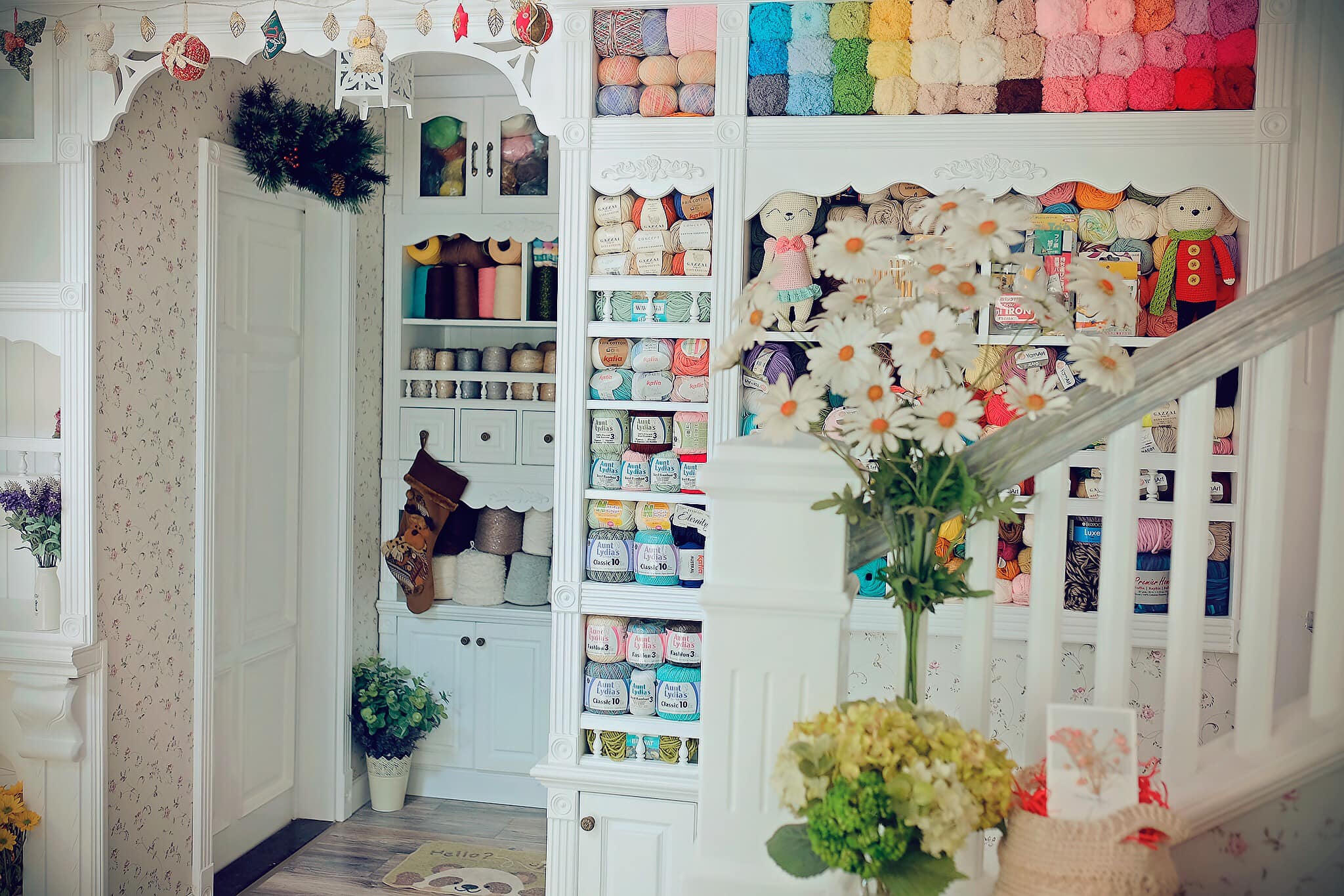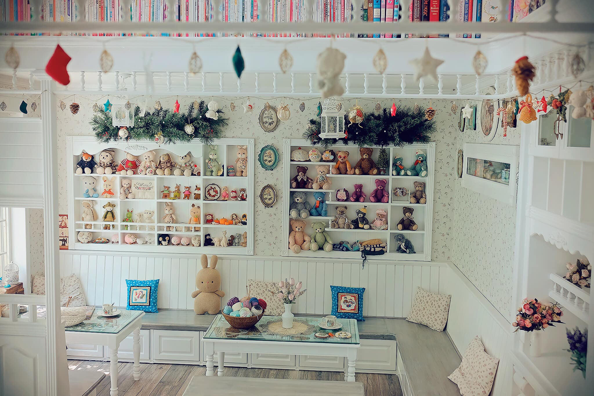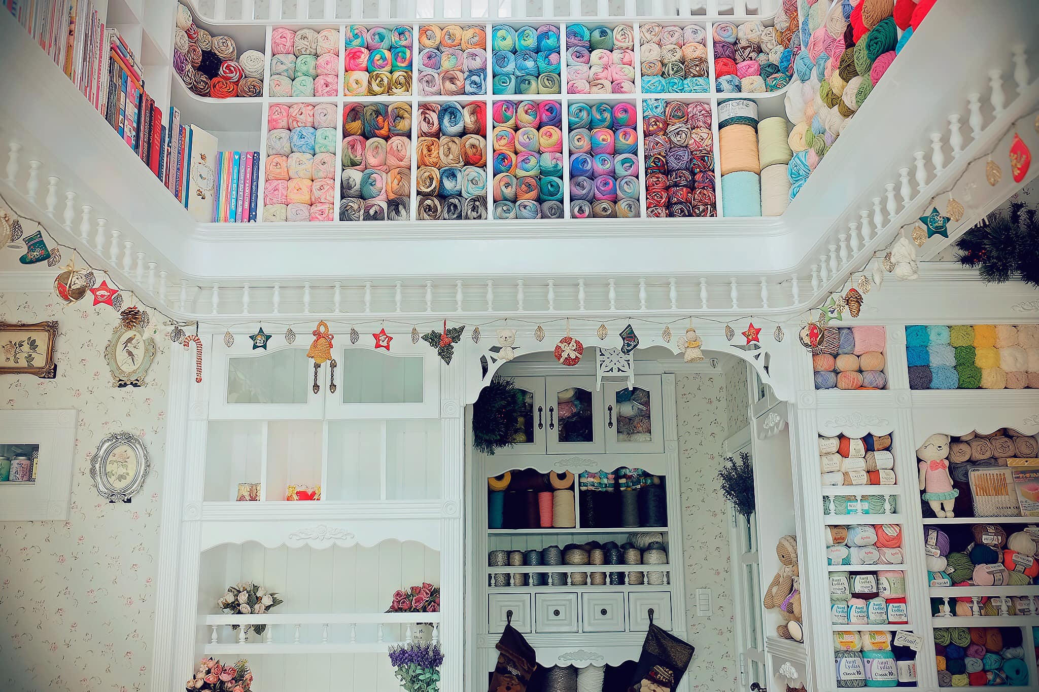 Căn phòng tràn ngập len sợi và gấu bông tạo cảm giác như đang ở trong thế giới chuyện tranh. |
