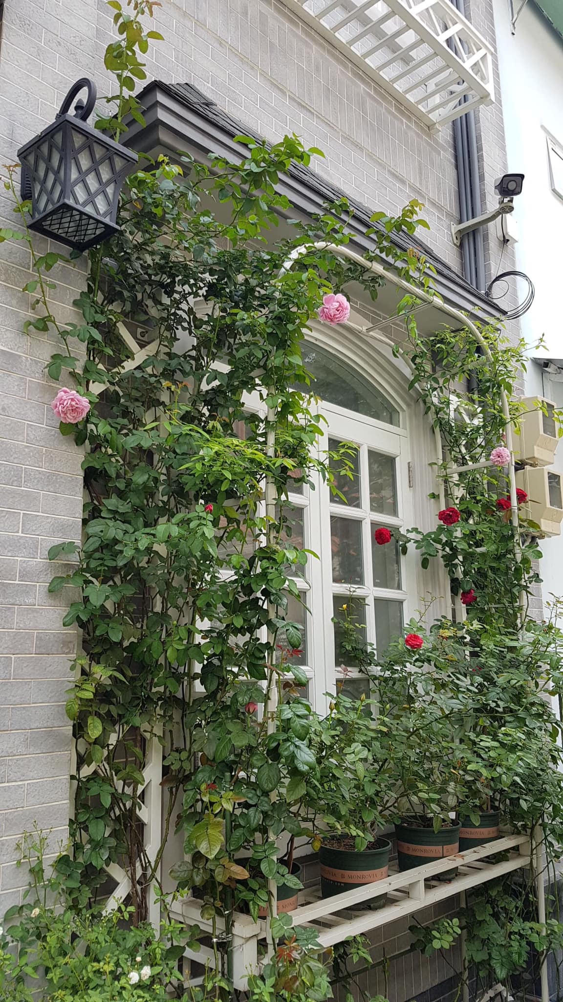 Bên ngoài khung cửa sổ cũng được vợ chồng chị Thanh trồng thật nhiều hoa hồng. |