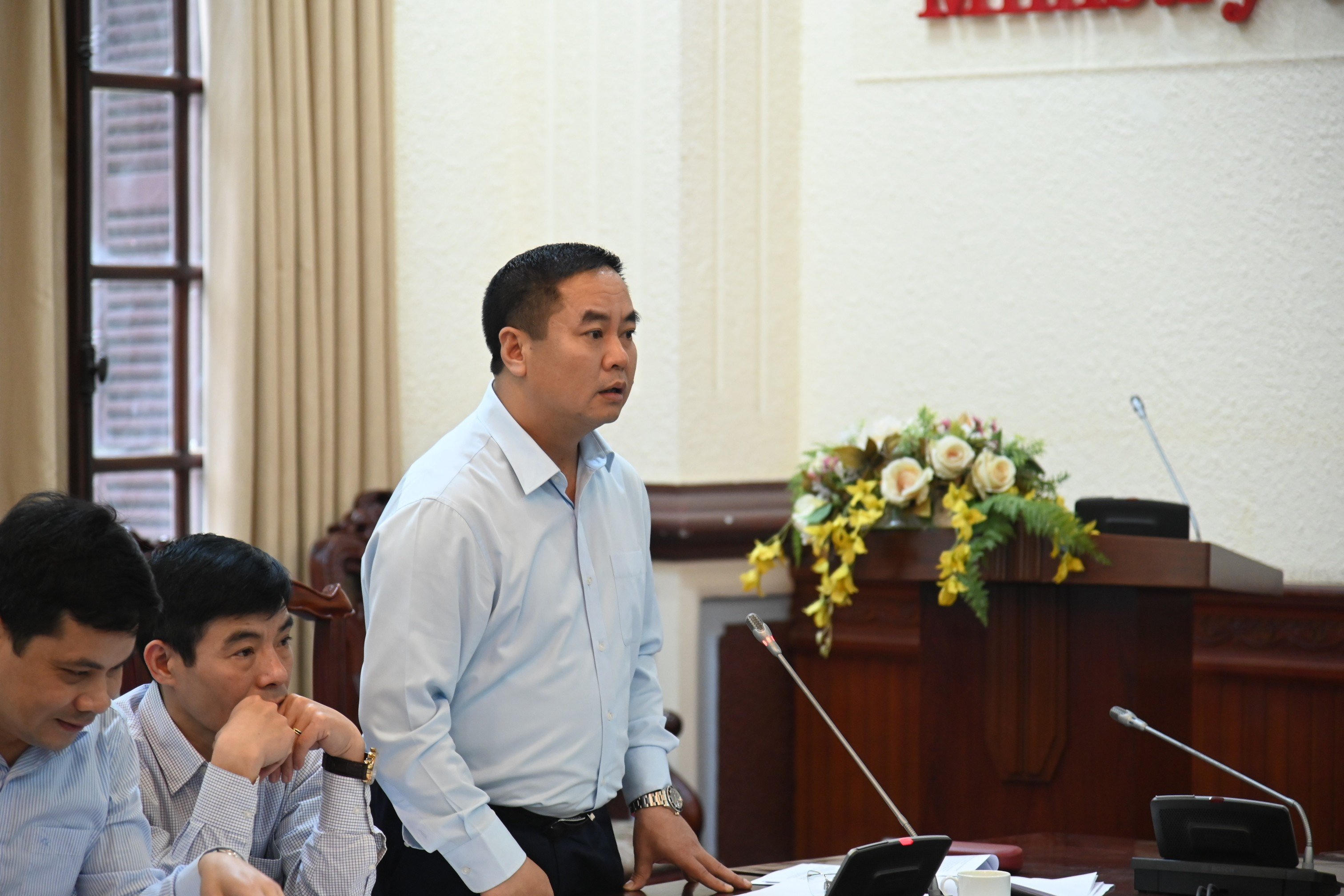 Đại diện Bộ Công an phát biểu tại buổi làm việc. |