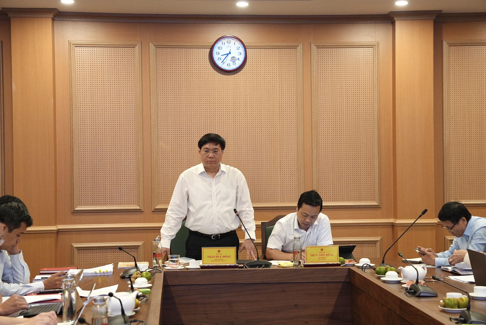 Thứ trưởng Bộ Tư pháp Trần Tiến Dũng – Phó Trưởng ban soạn thảo, Tổ trưởng Tổ Biên tập dự án Luật và Thứ trưởng Bộ Kế hoạch & Đầu tư Trần Duy Đông chủ trì buổi làm việc.