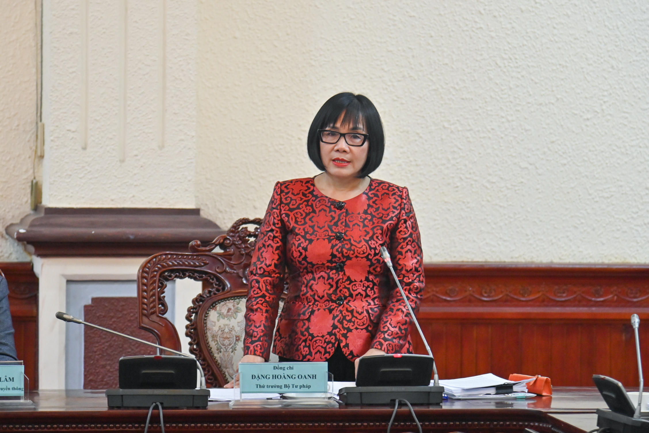 Thứ trưởng Bộ Tư pháp Đặng Hoàng Oanh kết luận cuộc họp. |