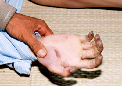 Nghi vấn nạn nhân bị dùng nhục hình càng rõ khi thi thể Bình có nhiều chỗ bị thâm tím, rõ nhất ở vùng lưng, đùi, chân; 10 ngón tay nghi vấn bị kẹp móp vào, rúm ró, tím ngắt; “trái khế” (yết hầu - PV) bị giập nát. “Nhìn thê thảm lắm, phải bị đánh, dùng nhục hình mới như ri. Chứ nếu treo cổ thật thì cũng đâu đến nỗi bể “trái khế”, người thân nghi vấn.