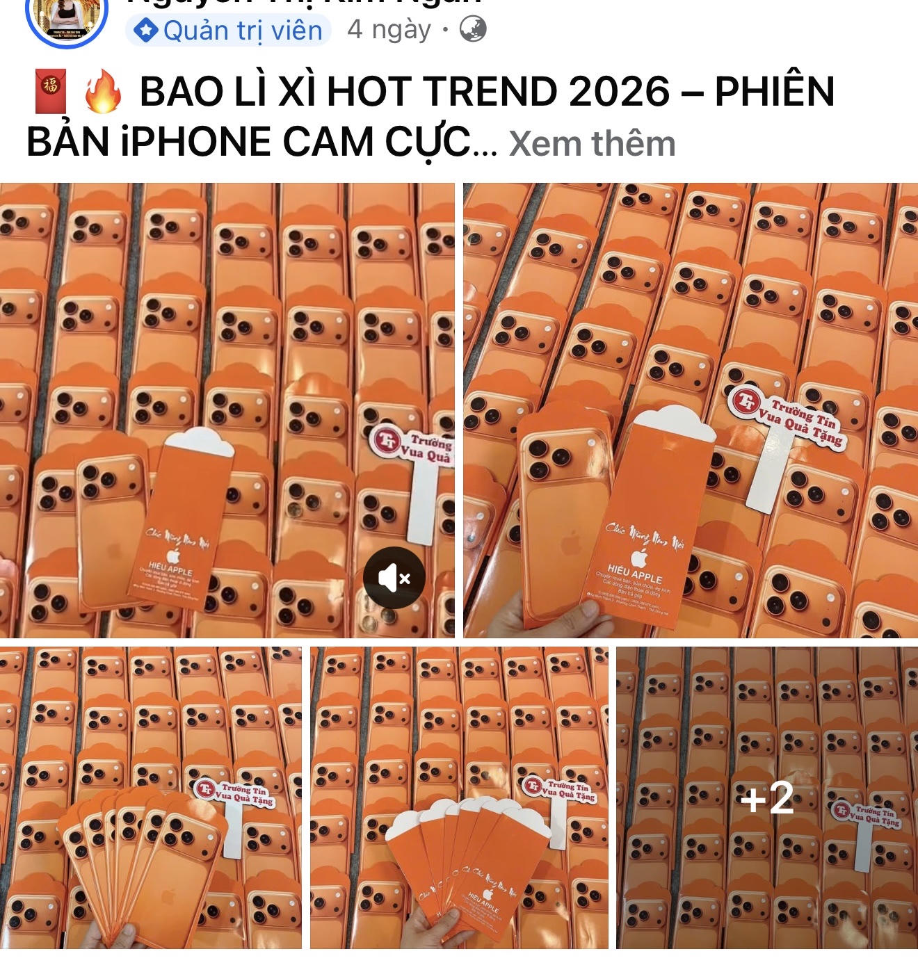 Các mẫu bao lì xì theo trào lưu như phiên bản “iPhone 17 Pro Max” cũng được nhiều xưởng in tung ra thị trường, thậm chí nhận thiết kế bao lì xì theo yêu cầu để khách hàng cá nhân hóa thông điệp Tết của riêng mình.
