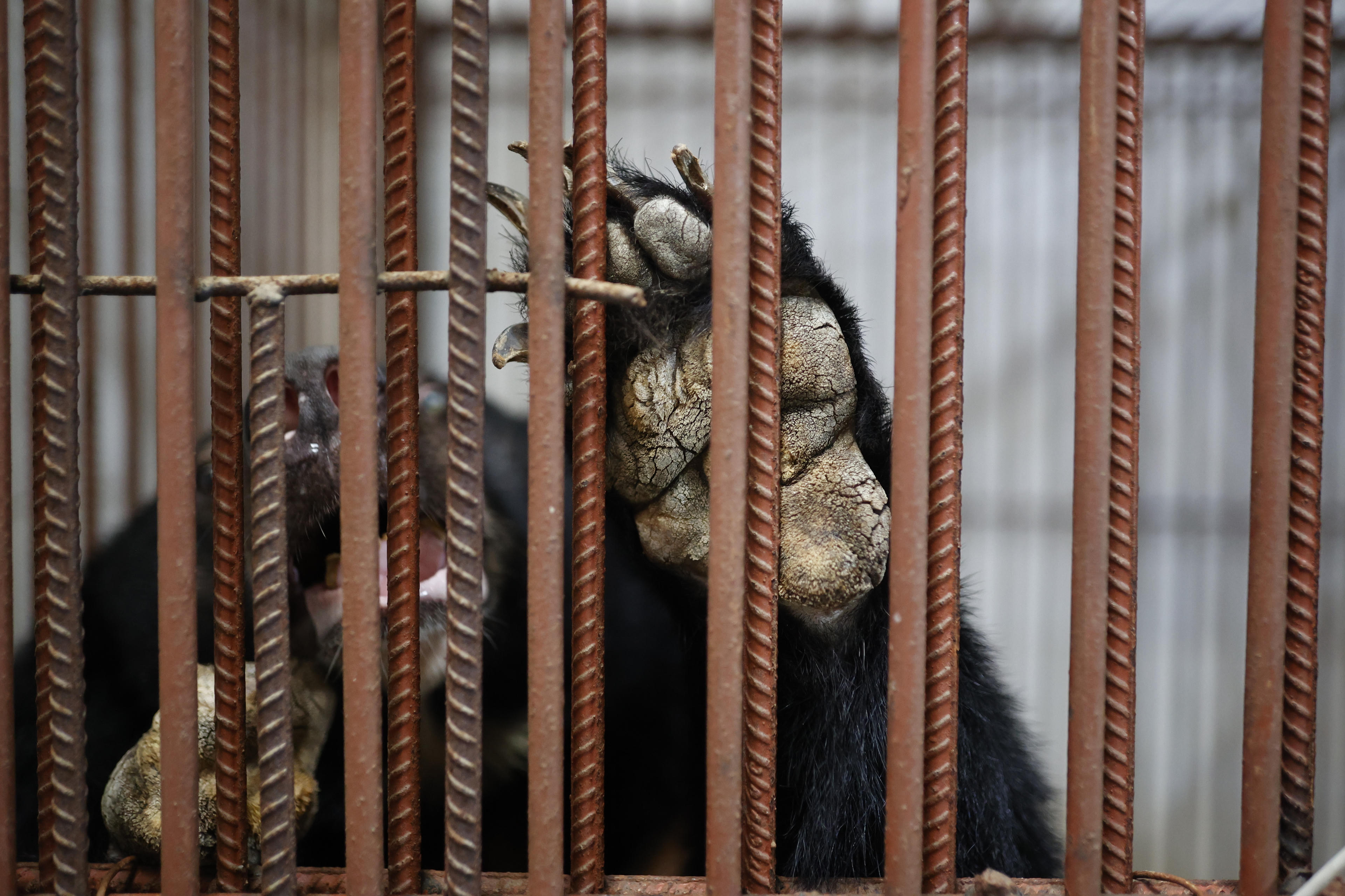 | Gấu Na trước khi cứu hộ - phần chi nứt nẻ do nuôi nhốt 20 năm. (Nguồn ảnh: Four Paws) |