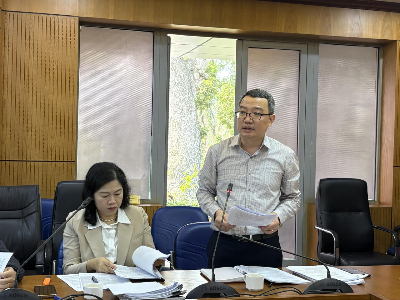 Cục trưởng Cục Kiểm tra văn bản và Quản lý xử lý vi phạm hành chính Hồ Quang Huy báo cáo tại cuộc họp. (Ảnh: PV) |