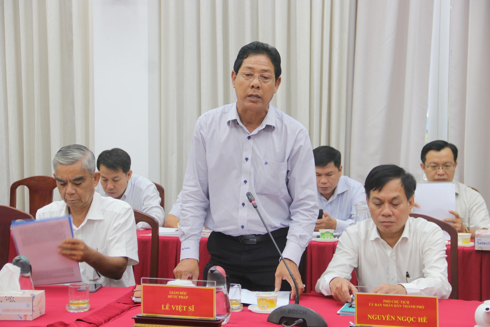Ông Lê Việt Sĩ – Giám đốc Sở Tư pháp TP Cần Thơ báo cáo với Đoàn công tác |
