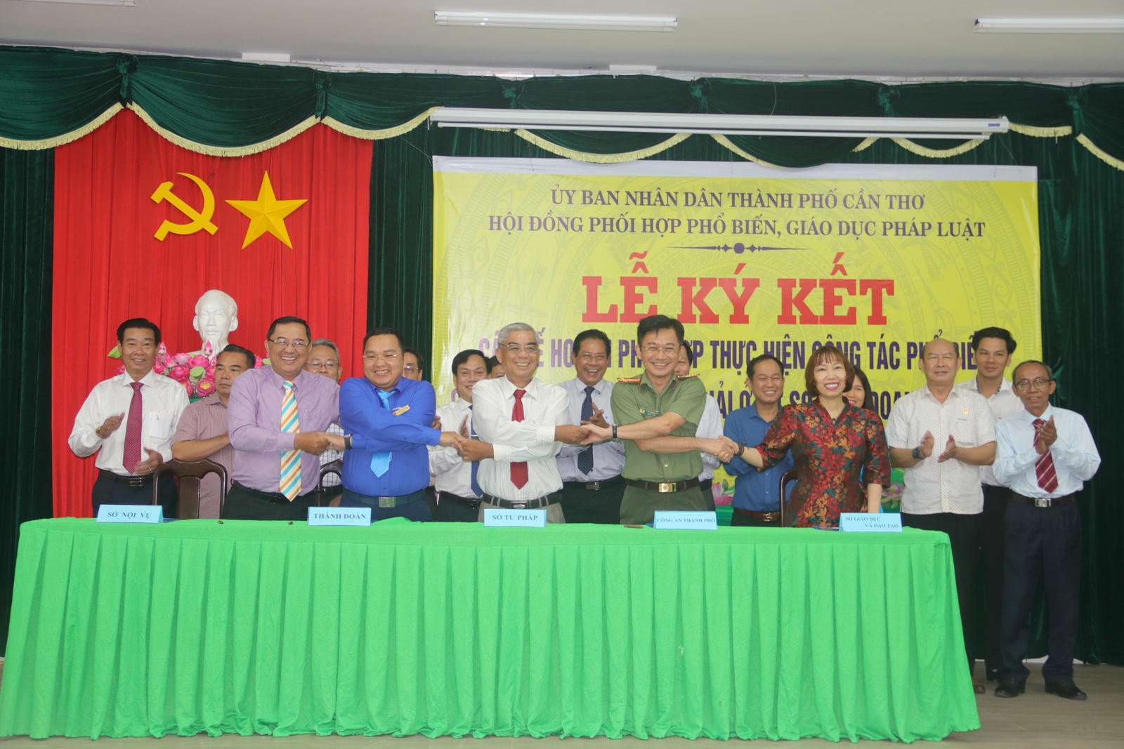 Tại buổi lễ, Sở Tư pháp đã ký kết Kế hoạch phối hợp với các cơ quan có tính chất đặc thù như: UB MTTQVN, Sở GD&ĐT, Sở Nội vụ, Công an thành phố; Hội LHPN; Ban Dân tộc thành phố; Thành đoàn thành phố; Ban ATGT thành phố và Hội Luật gia TP Cần Thơ.