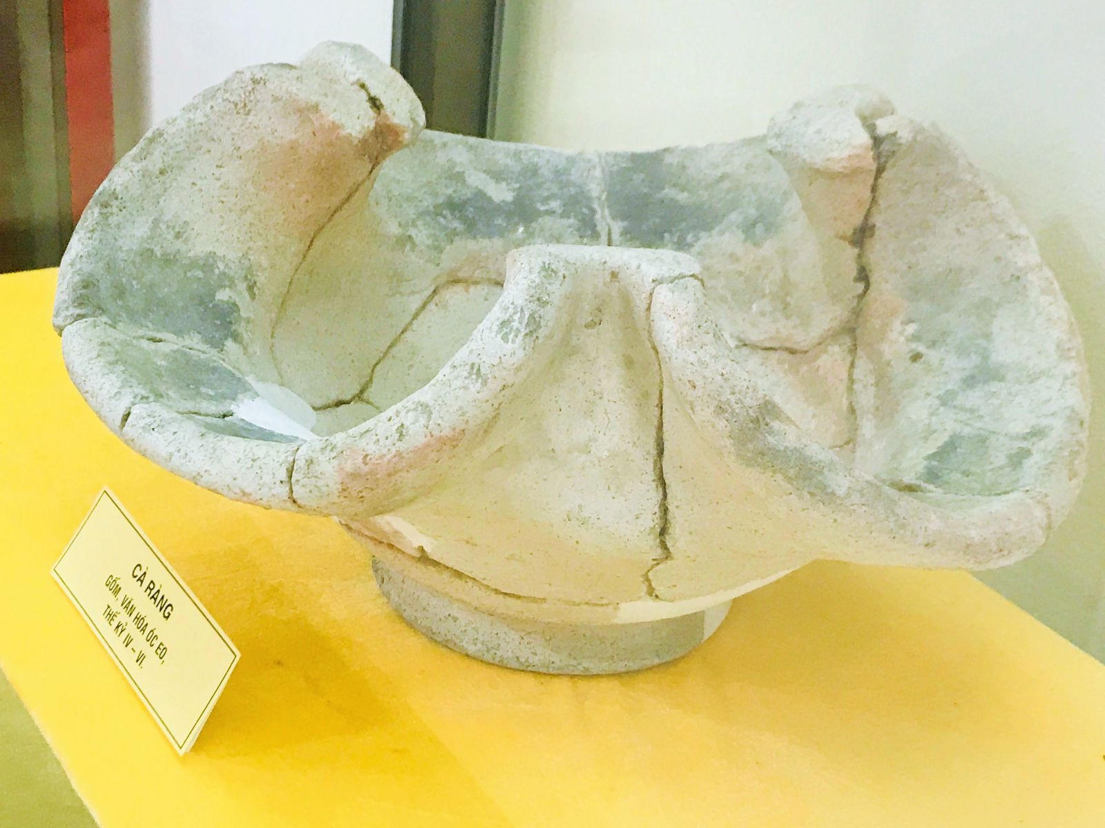 Cà Ràng được tạo tác trên chất liệu gốm thô, gồm đất sét trộn nhiều cát và vỏ trấu, có cấu trúc gồm ba phần, được ghép nối thành một thể thống nhất. Hiện vật mang dấu ấn rõ nét của truyền thống gắn với quá trình hình thành và phát triển cư dân bản địa.